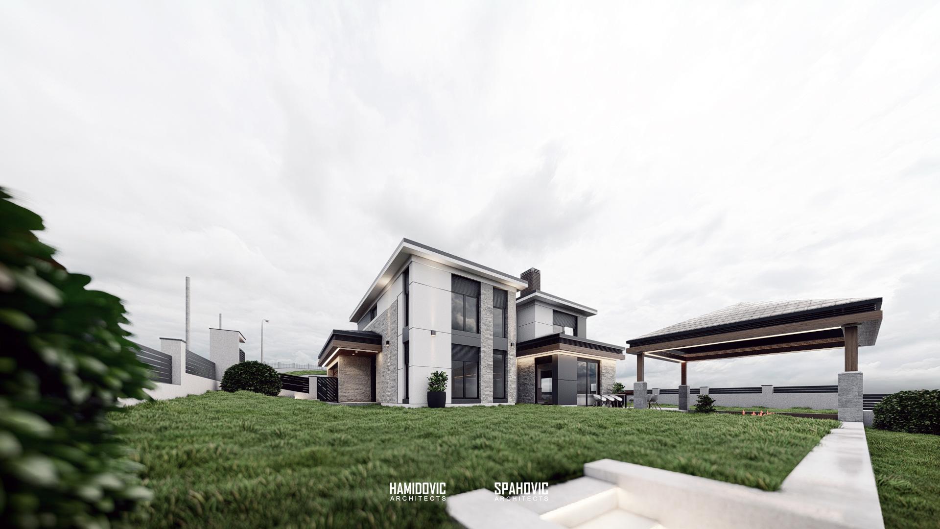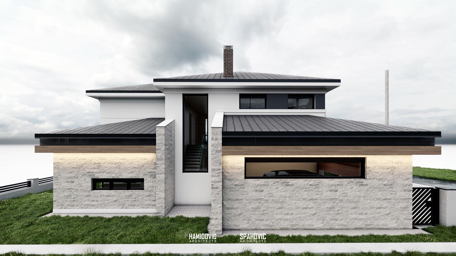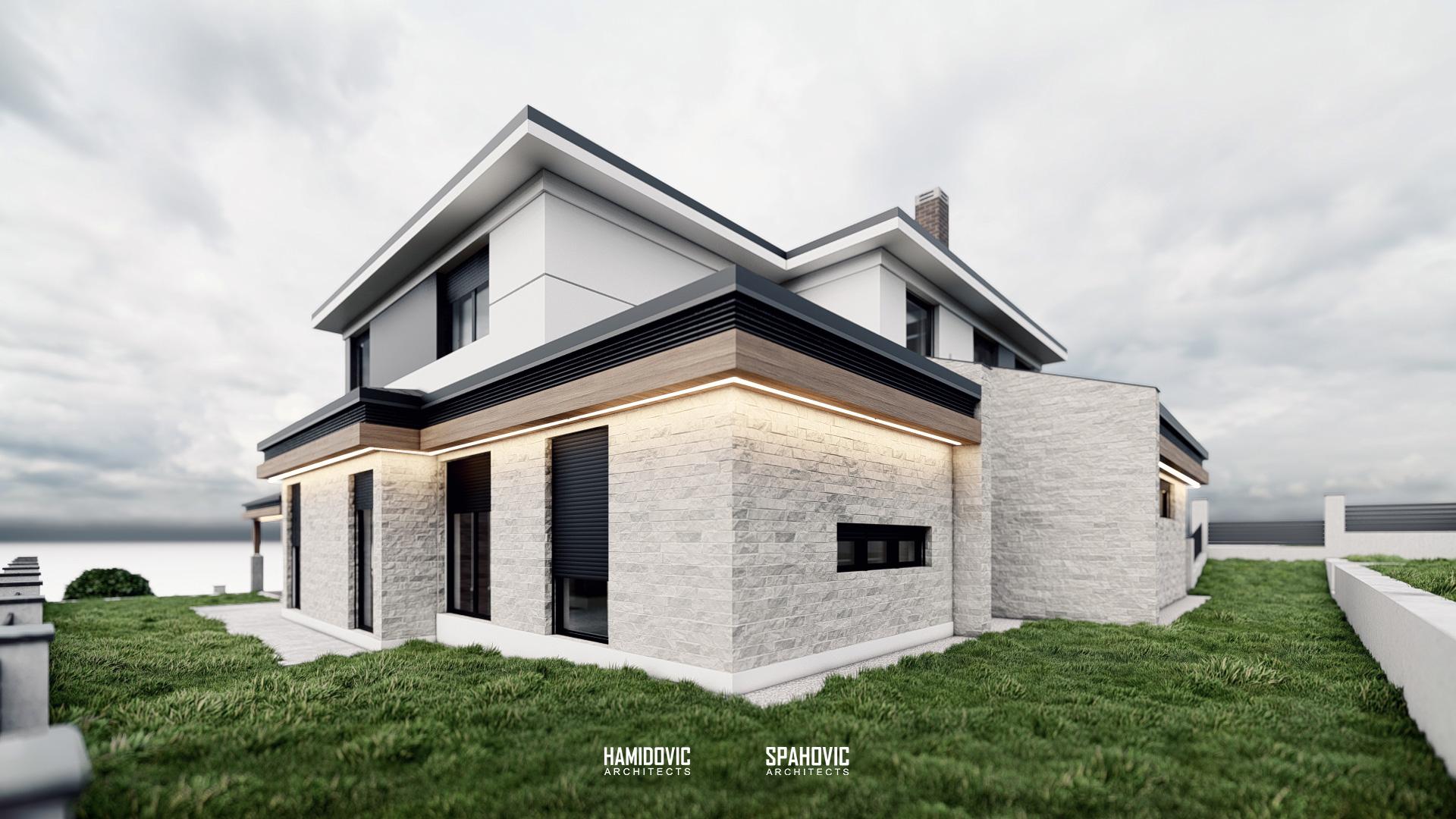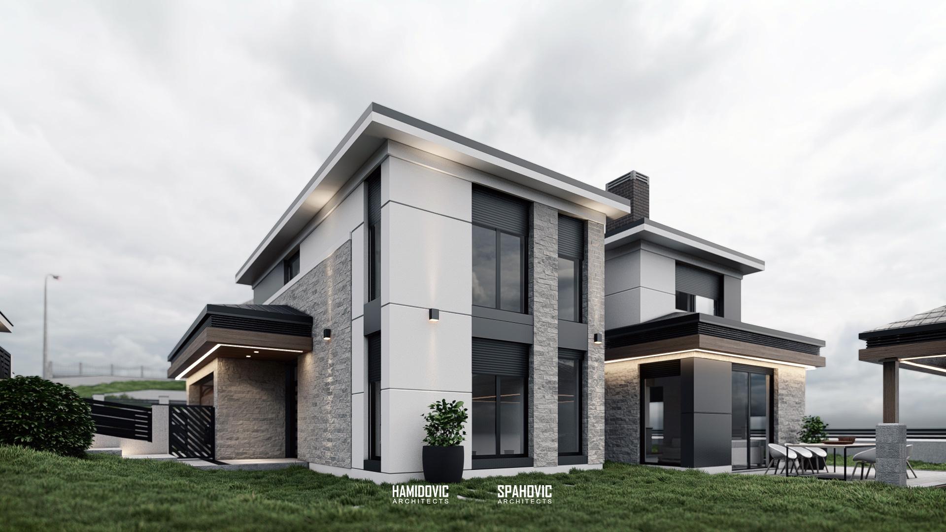 FJZVC | HOUSE is a residential building located in the periphery part of Tutin. It is designed in a modern style using contemporary materials on the facade included wood, metal and stone.