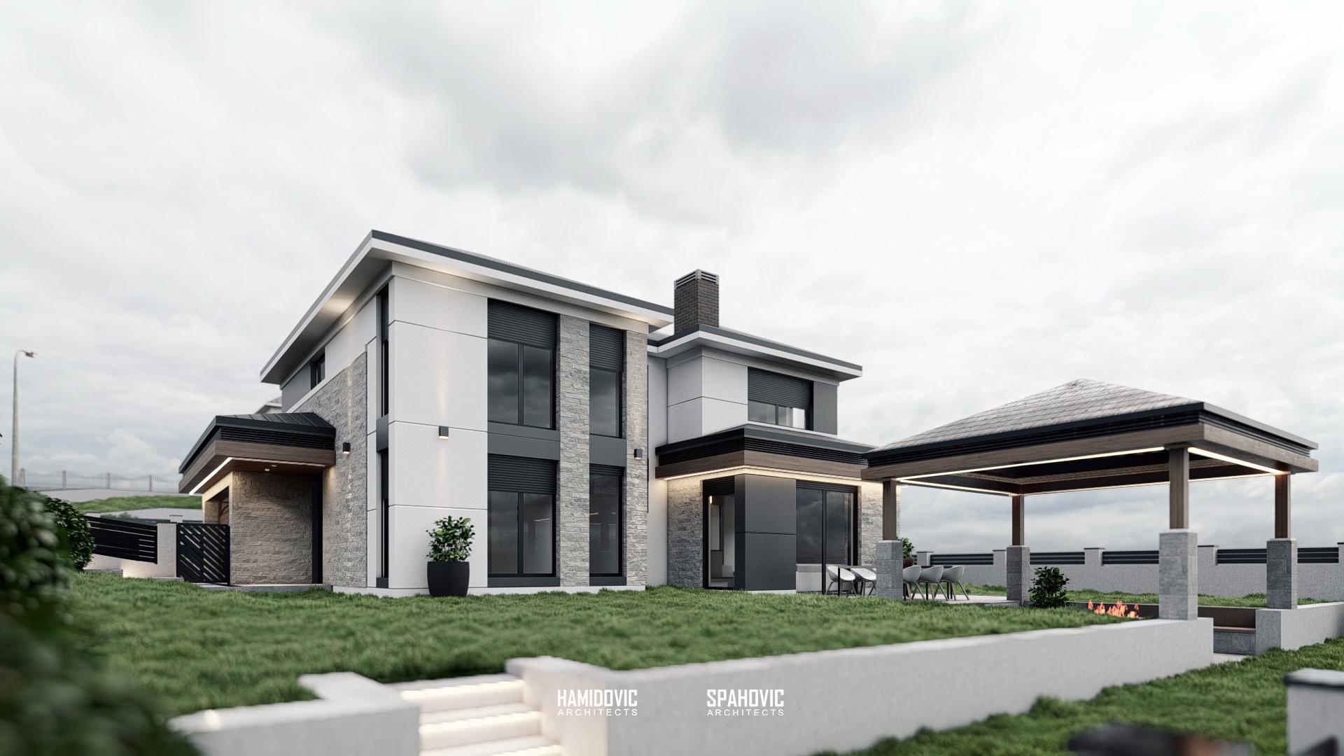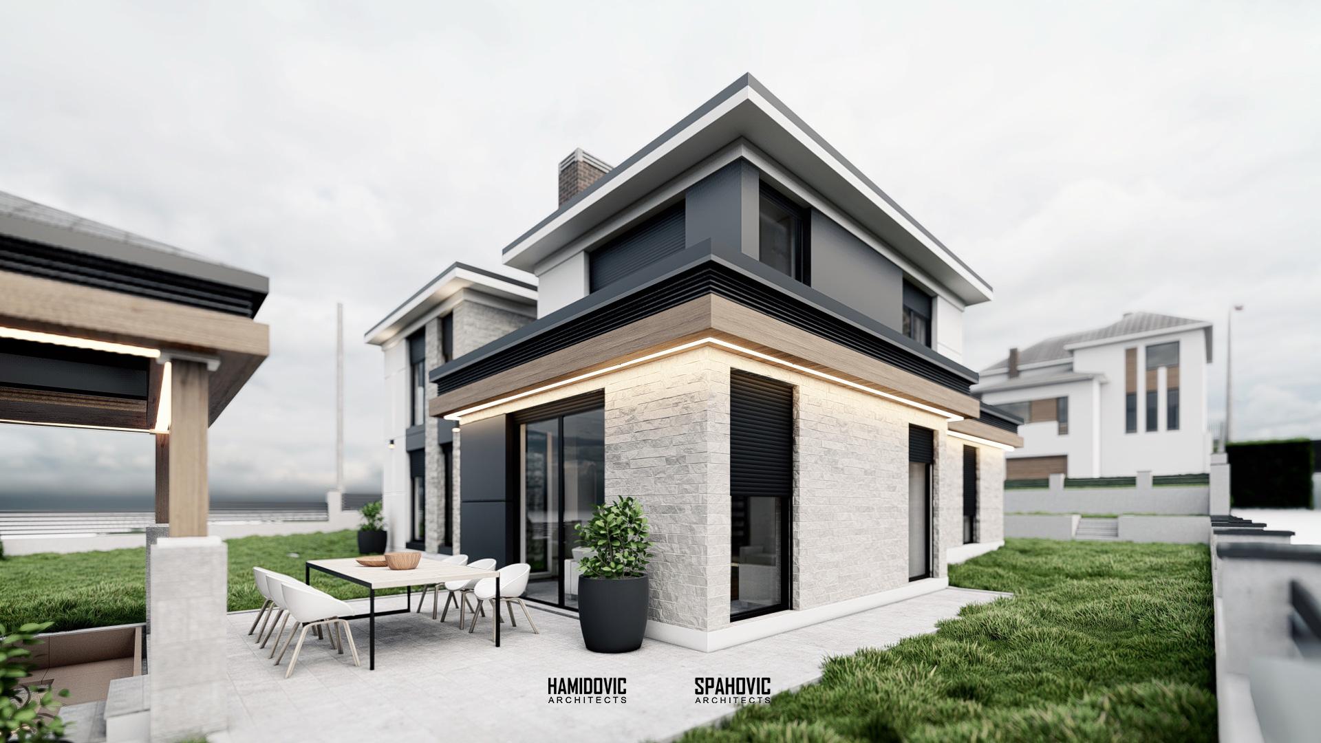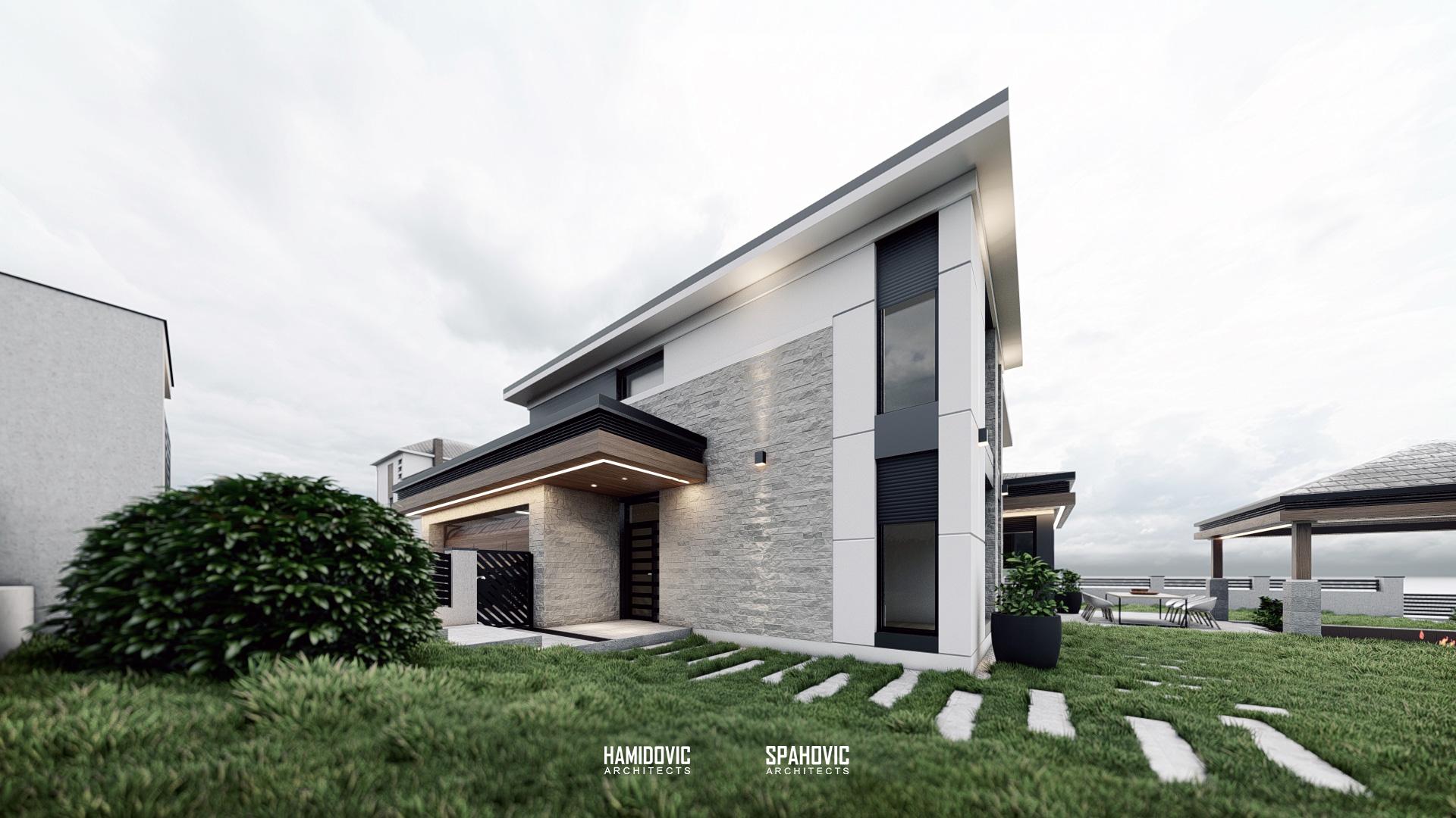 FJZVC | HOUSE is a residential building located in the periphery part of Tutin. It is designed in a modern style using contemporary materials on the facade included wood, metal and stone.