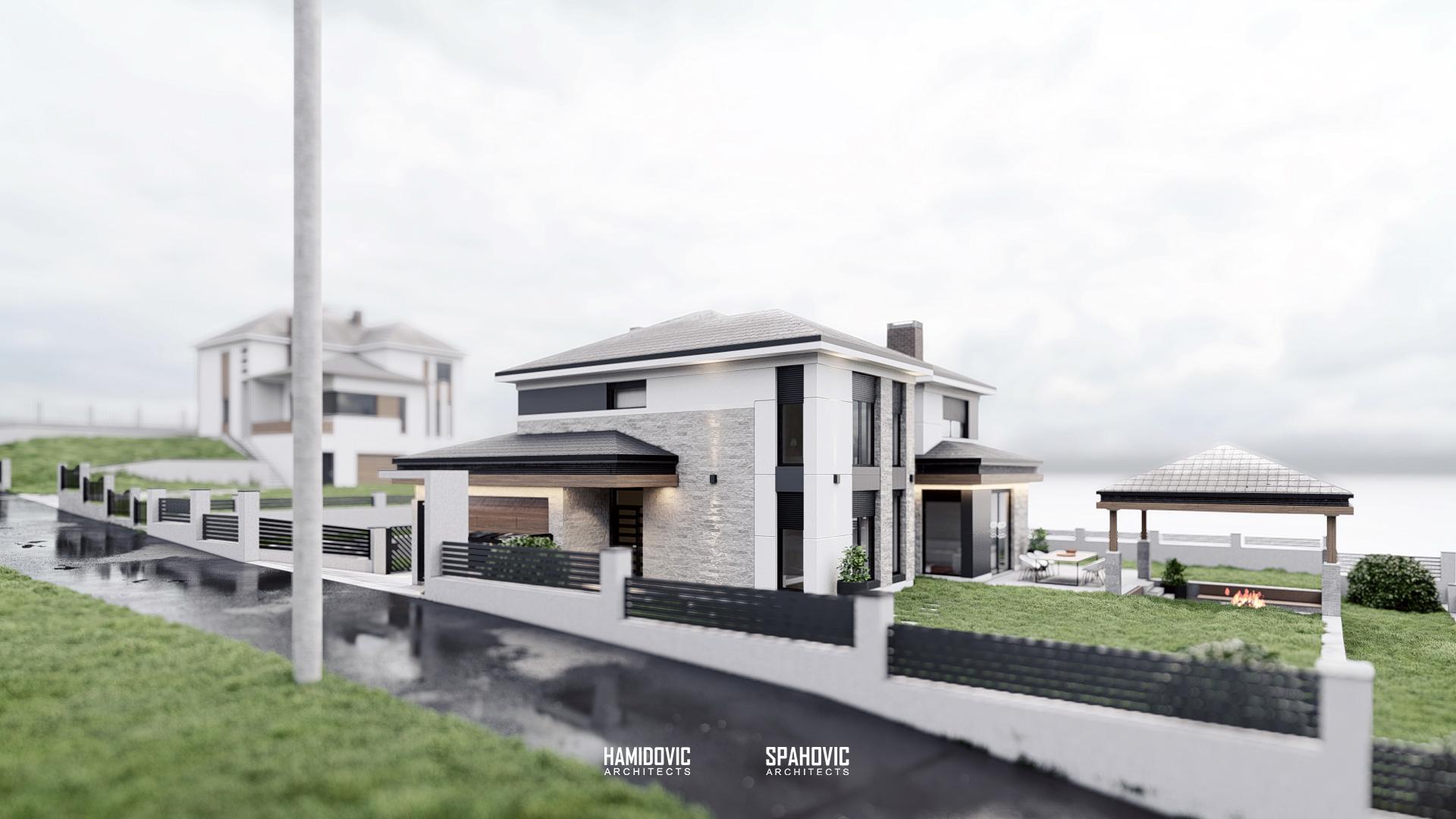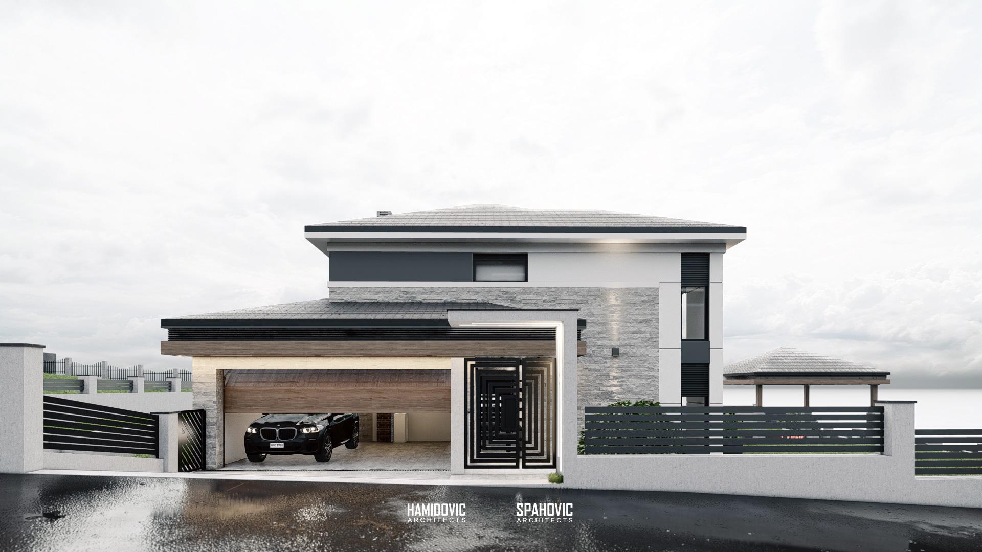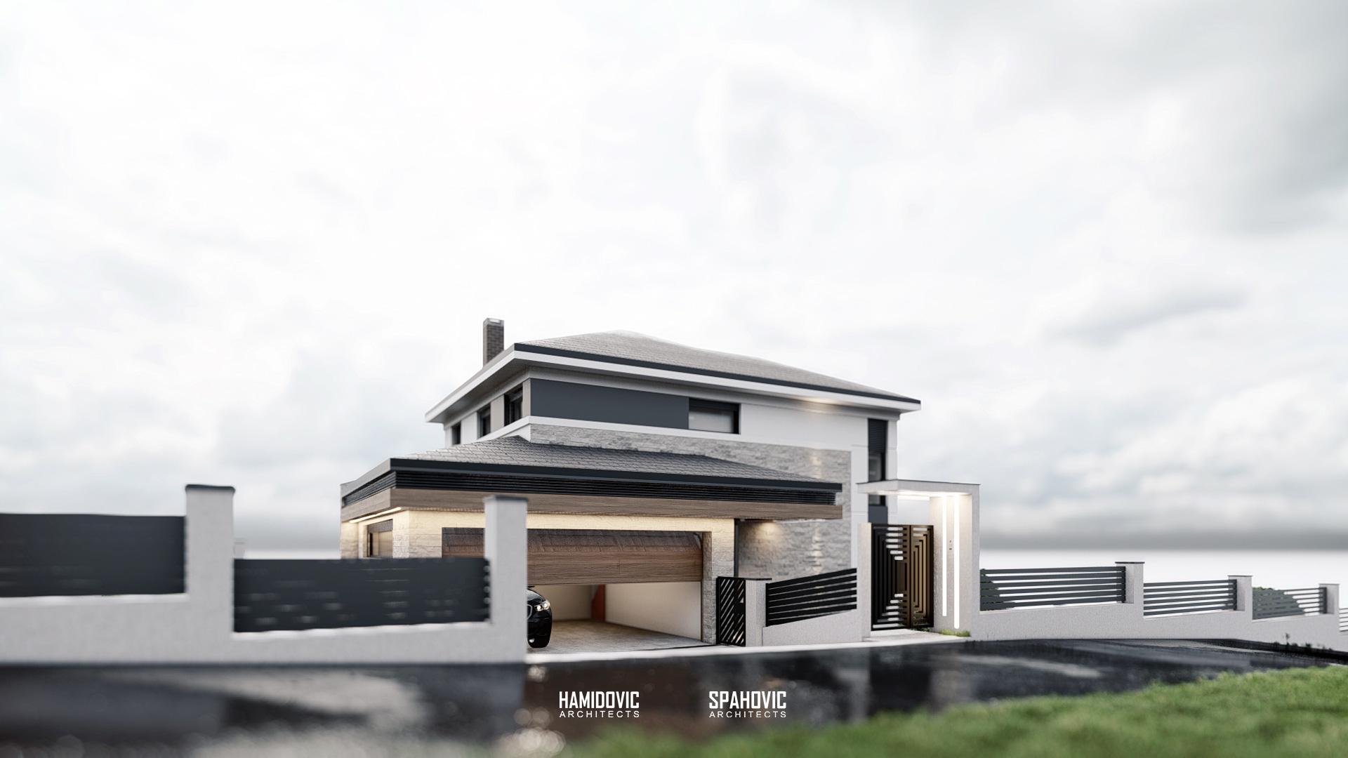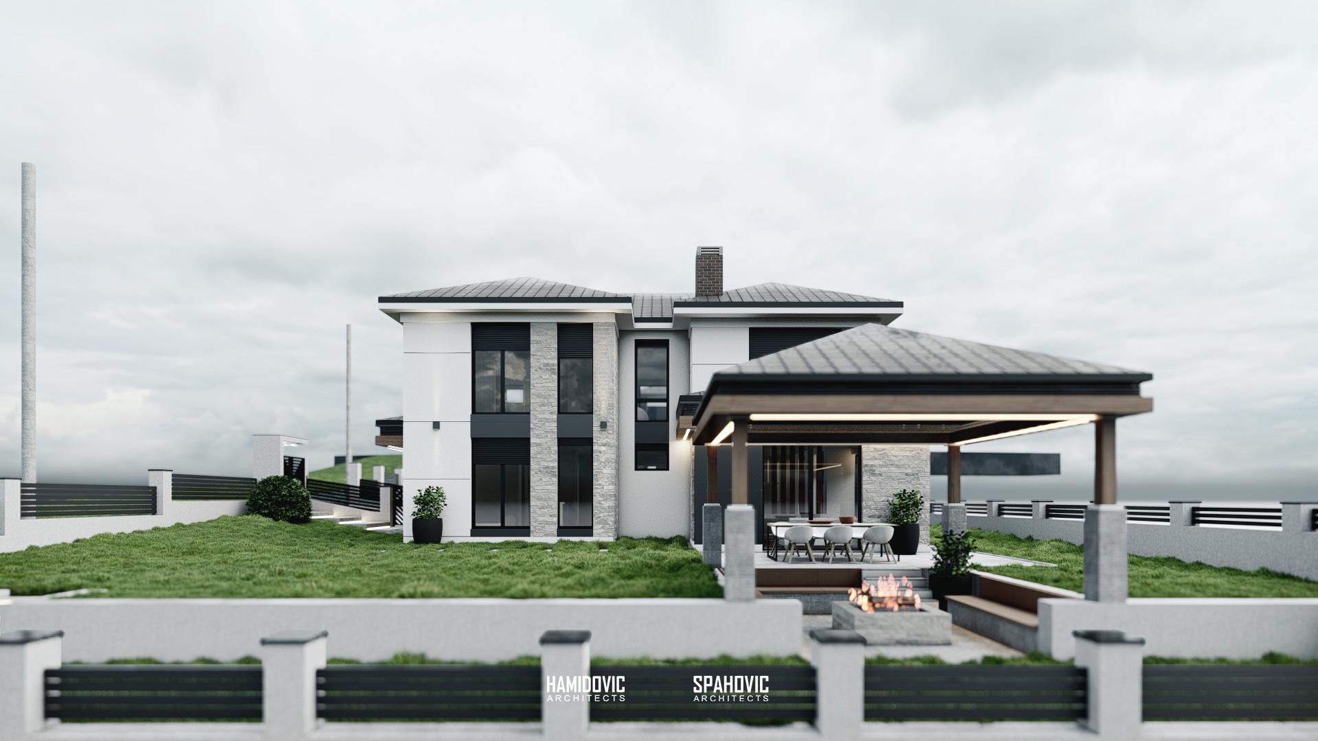 FJZVC | HOUSE is a residential building located in the periphery part of Tutin. It is designed in a modern style using contemporary materials on the facade included wood, metal and stone.