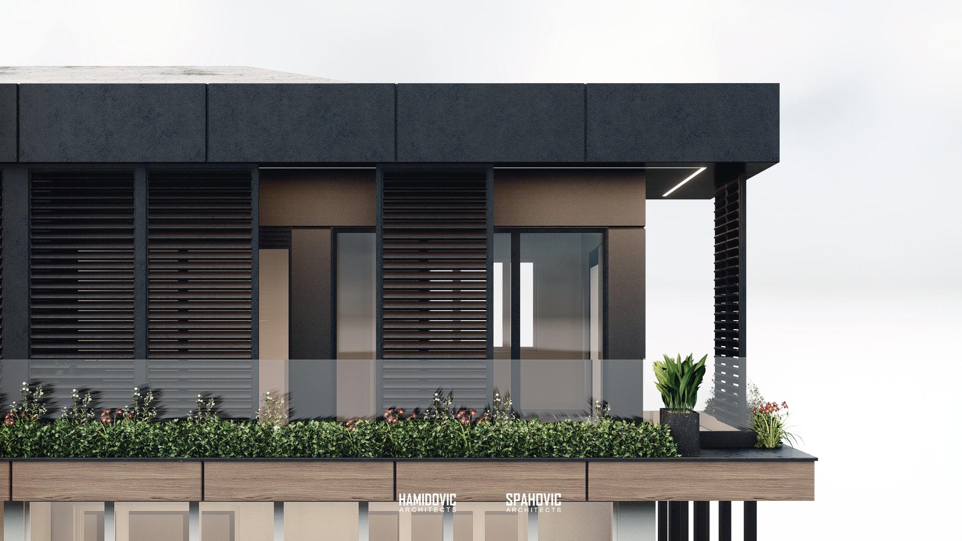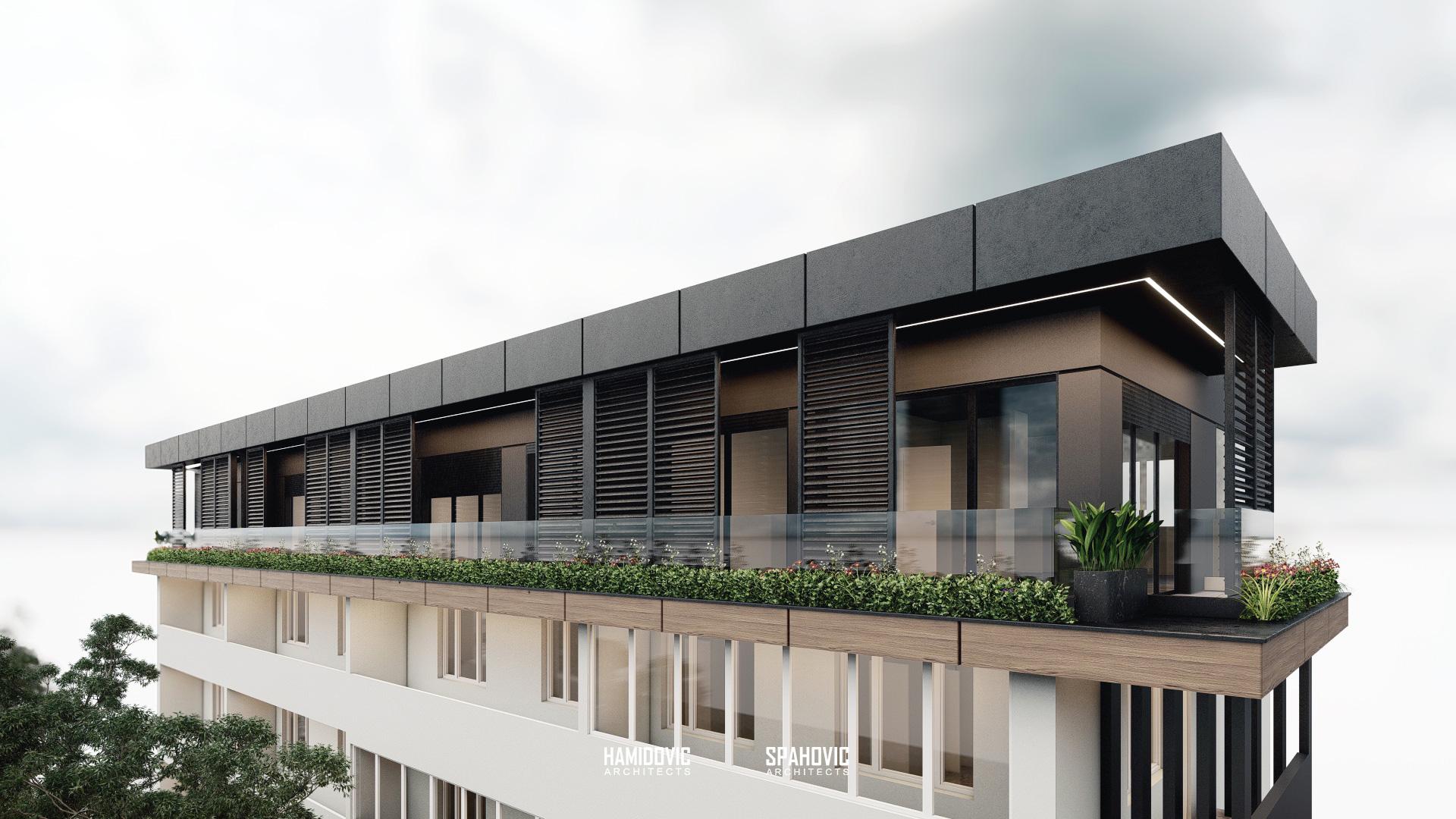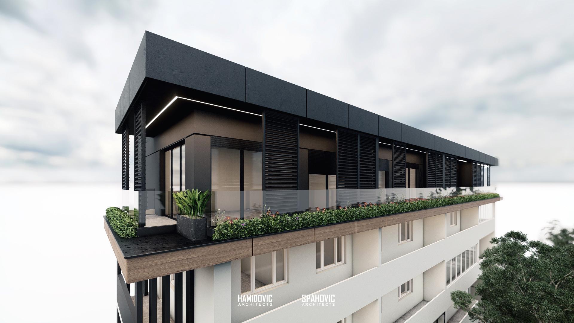 BESSO APARTMENTS is a residential apartments located in the central part of Novi Pazar on the top of the building roof, in Southern Republic of Serbia. It is designed in a modern style using contemporary materials on the facade.