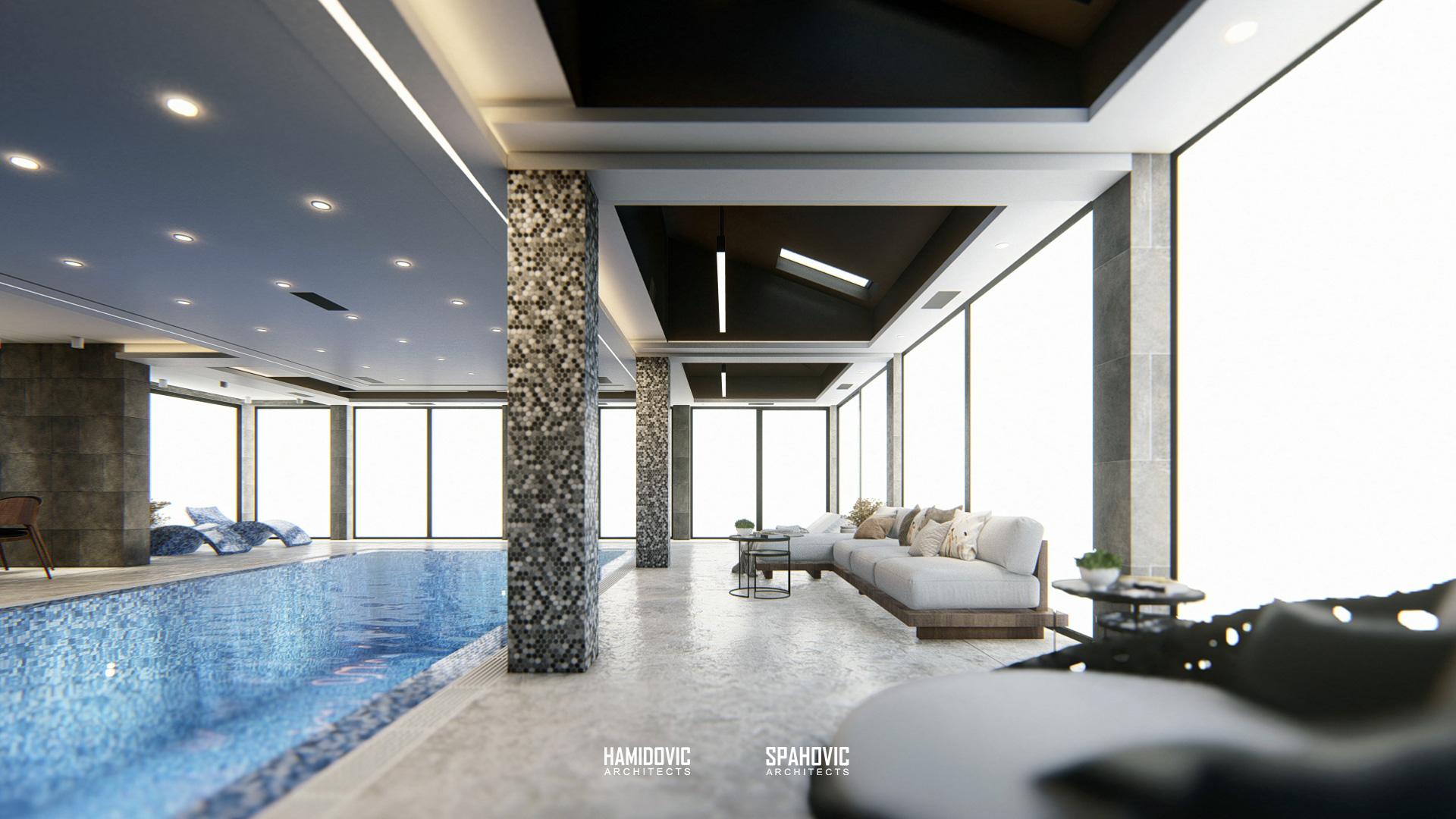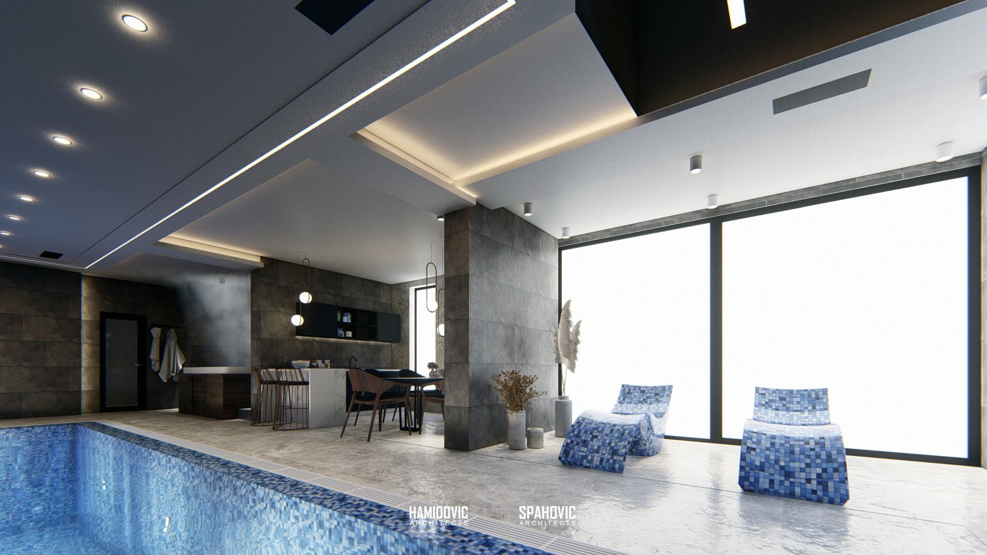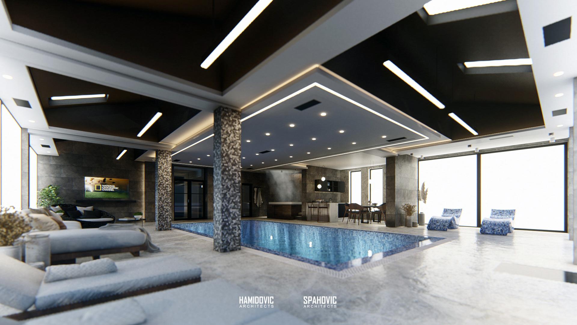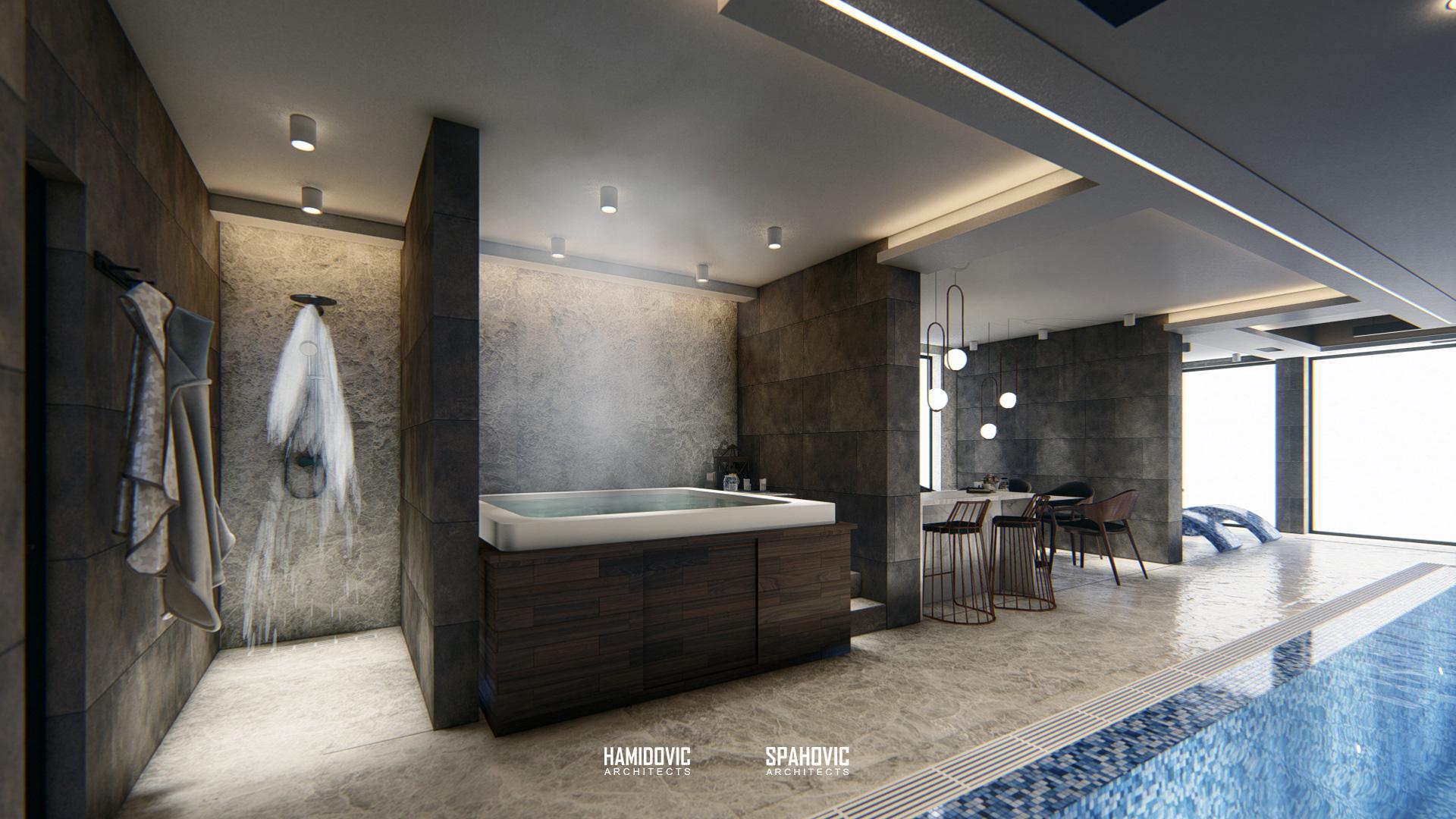 UKC | SPA ZONE is a cottage located on the periphery part of Novi Pazar, Republic of Serbia. Spa zone also includes indoor swimming pool with modern design and contemporary materials like ceramic with stone texture.