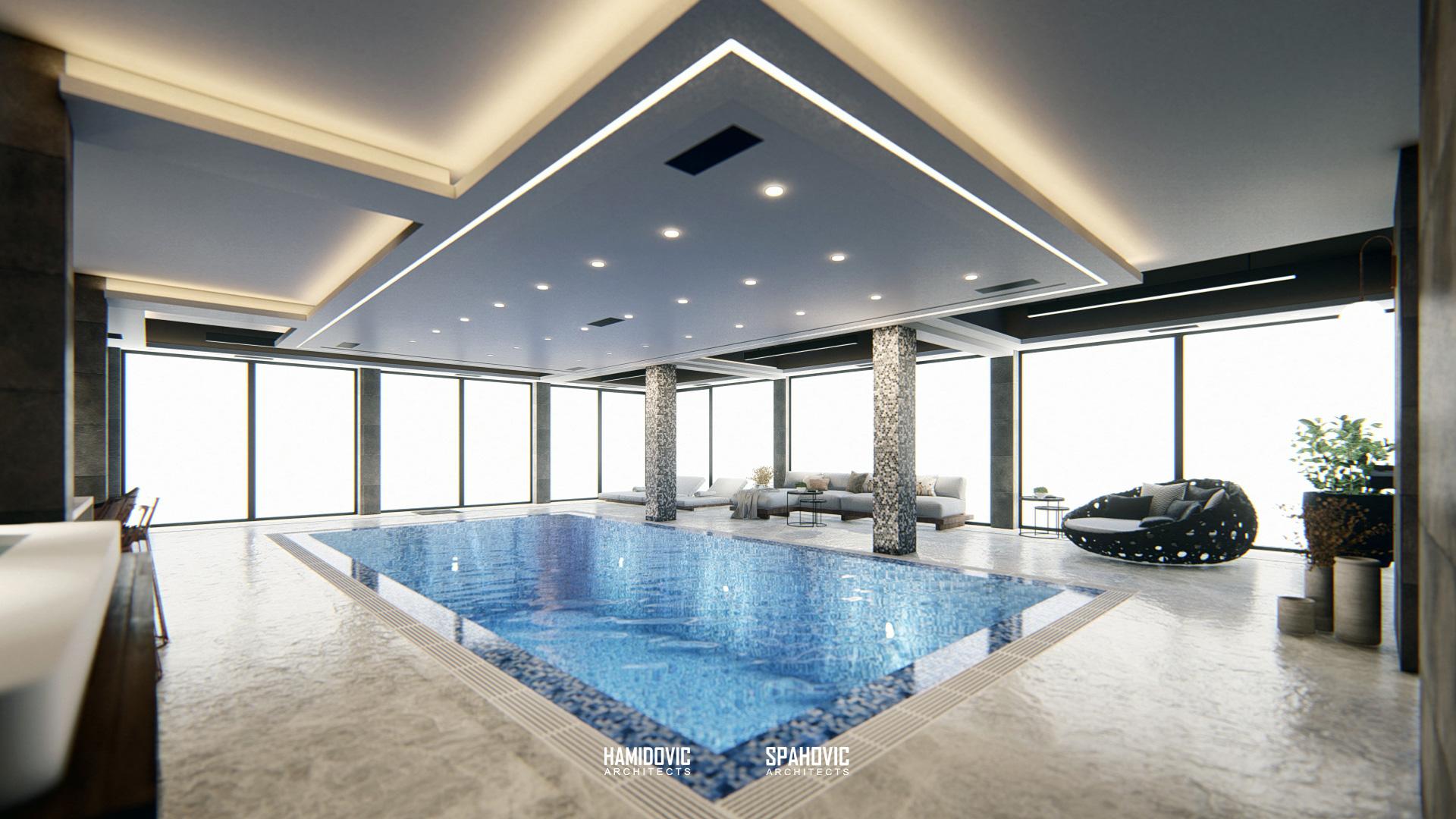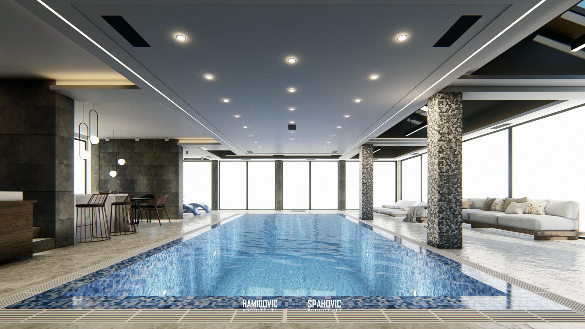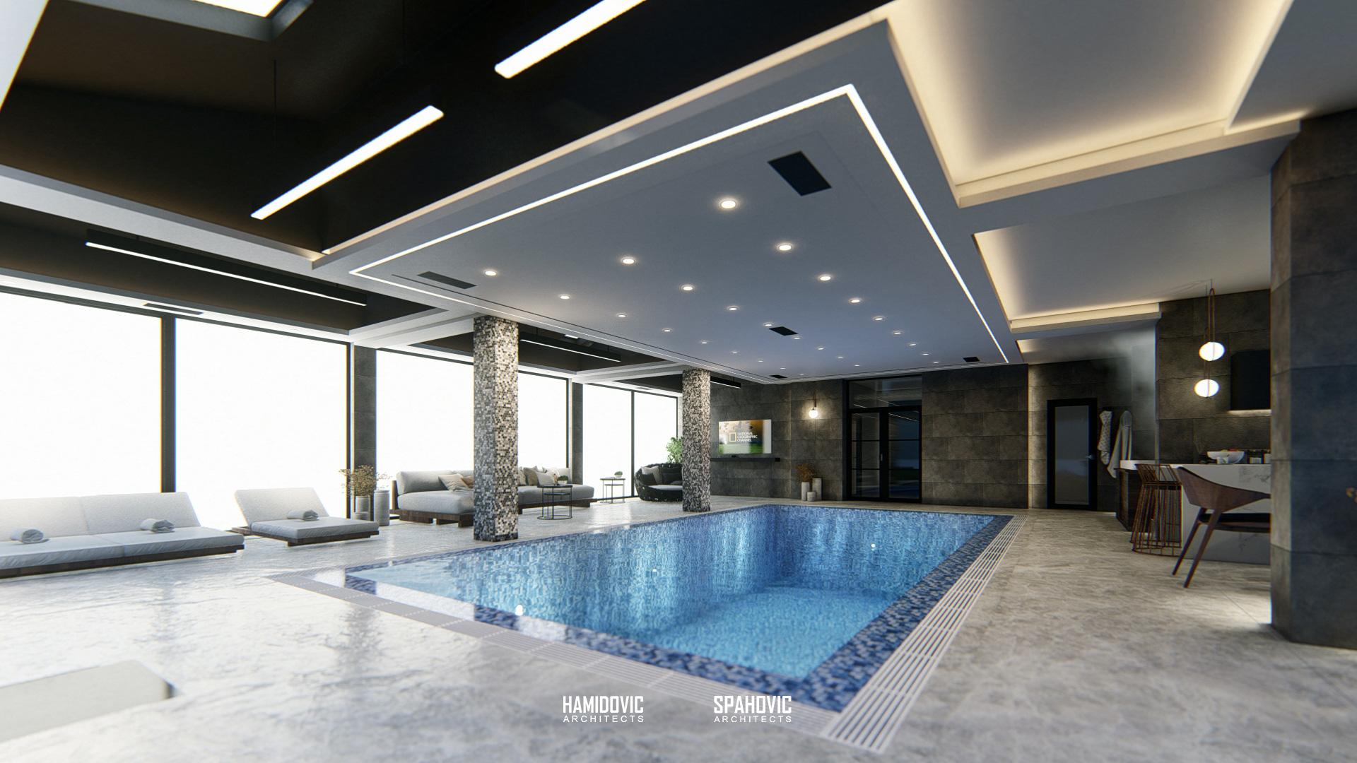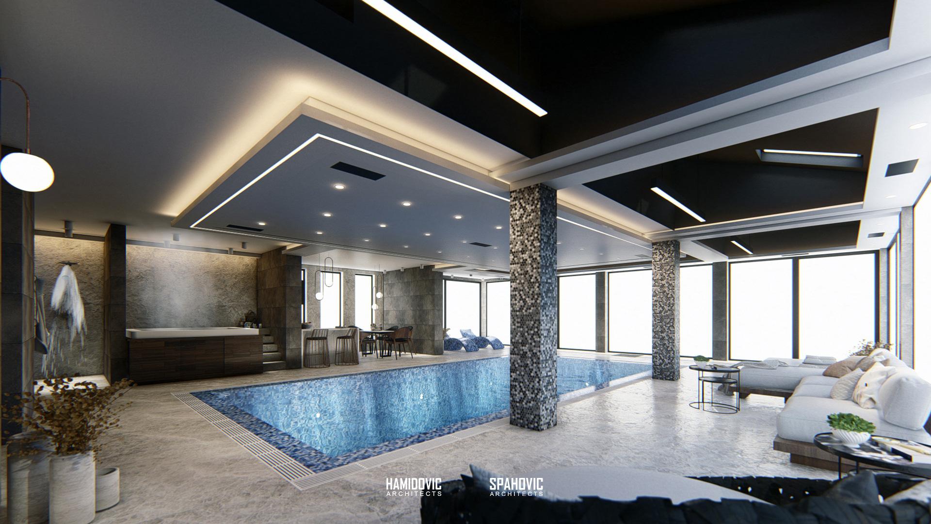 UKC | SPA ZONE is a cottage located on the periphery part of Novi Pazar, Republic of Serbia. Spa zone also includes indoor swimming pool with modern design and contemporary materials like ceramic with stone texture.