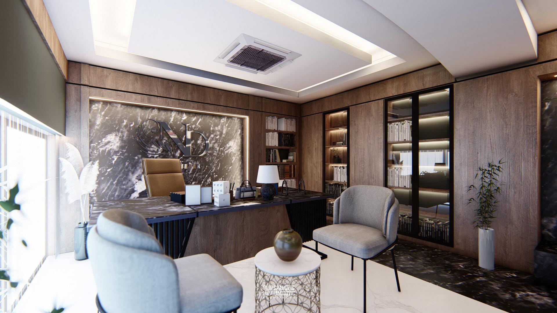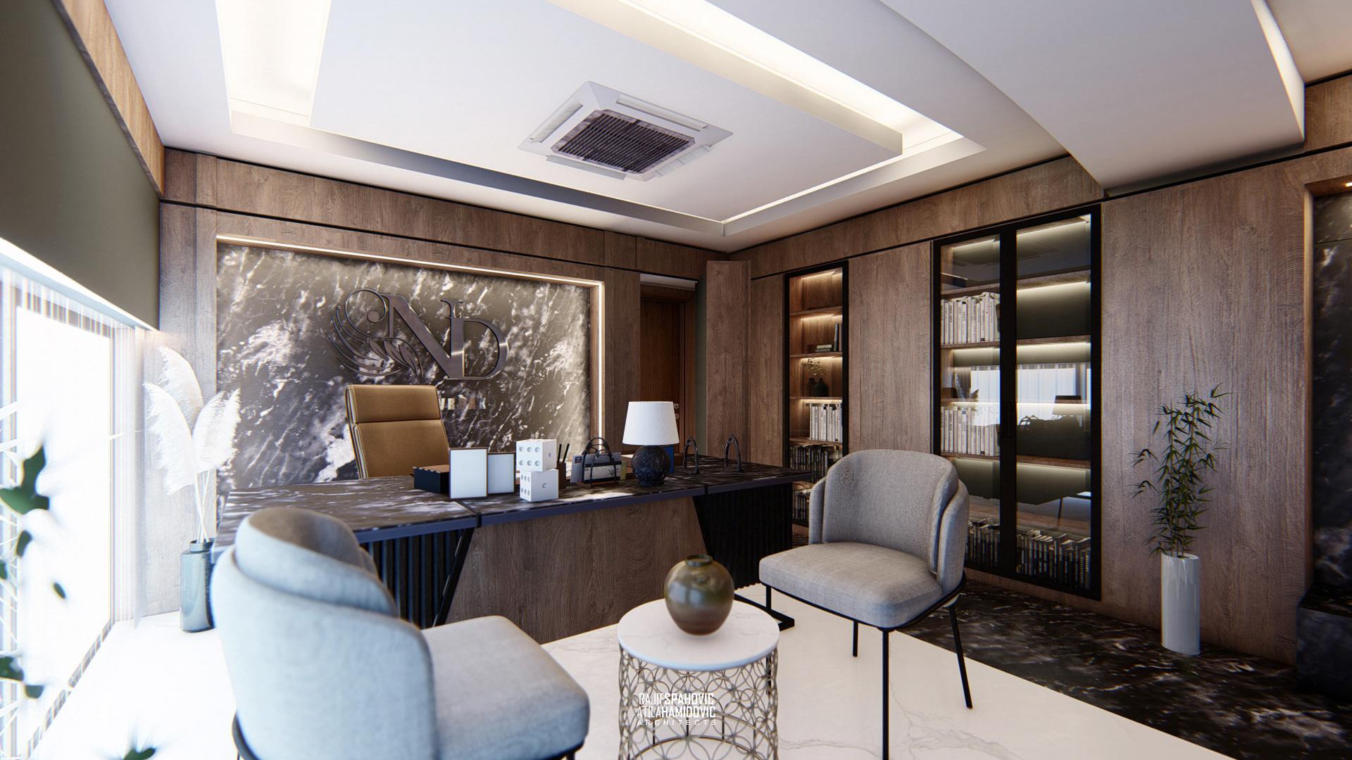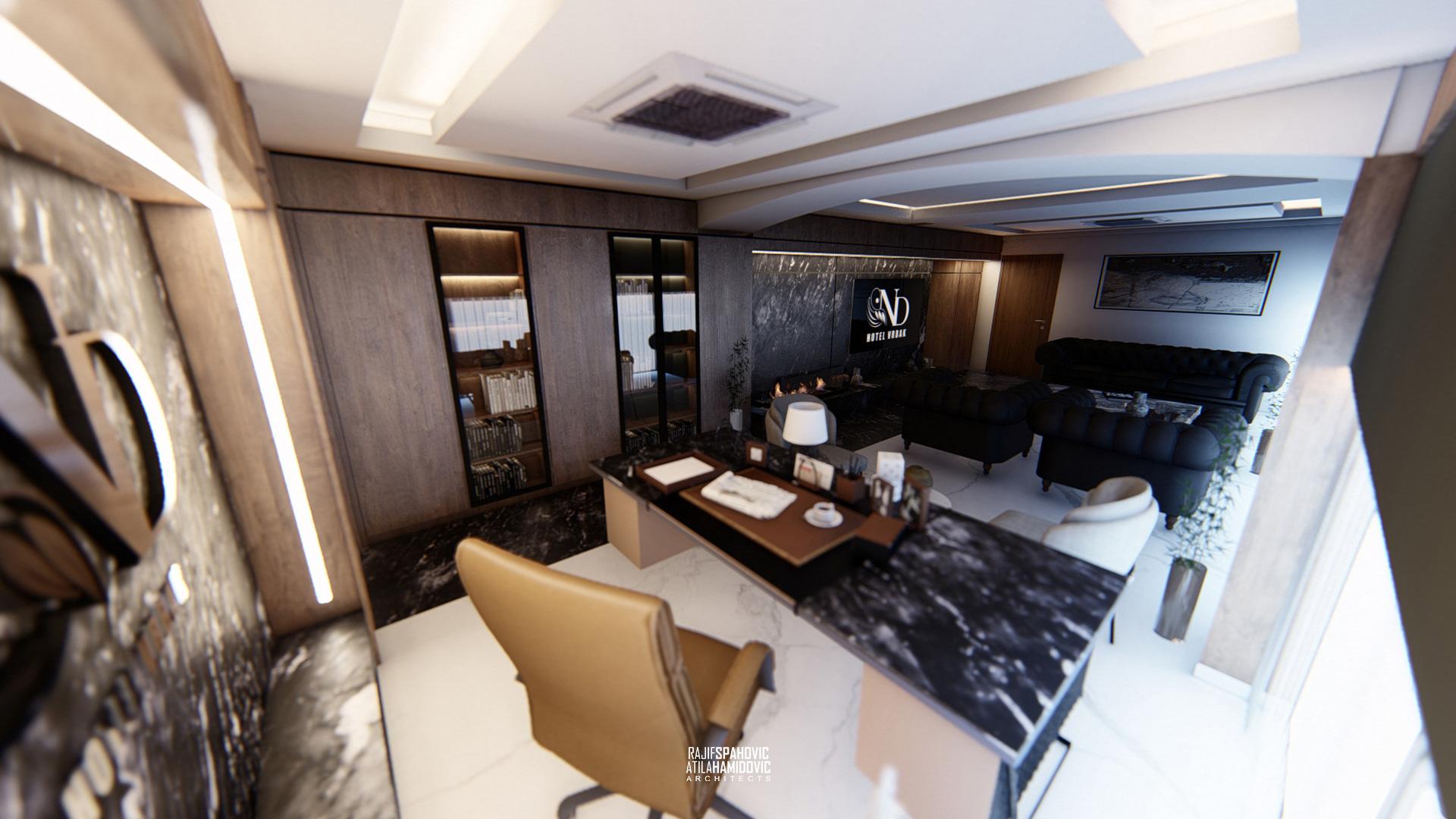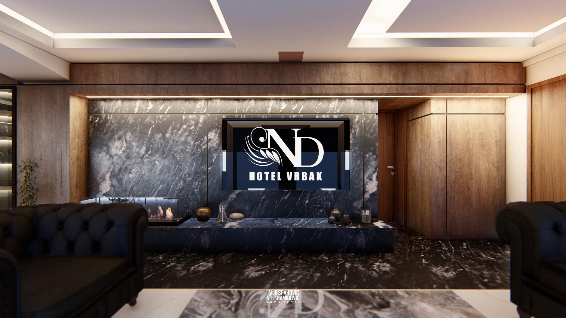 ND VRBAK is an office space of the city hotel ,,Vrbak'' located in the center part of Novi Pazar. It is designed in a modern style using contemporary materials of the interiors included wood, metal and stone.