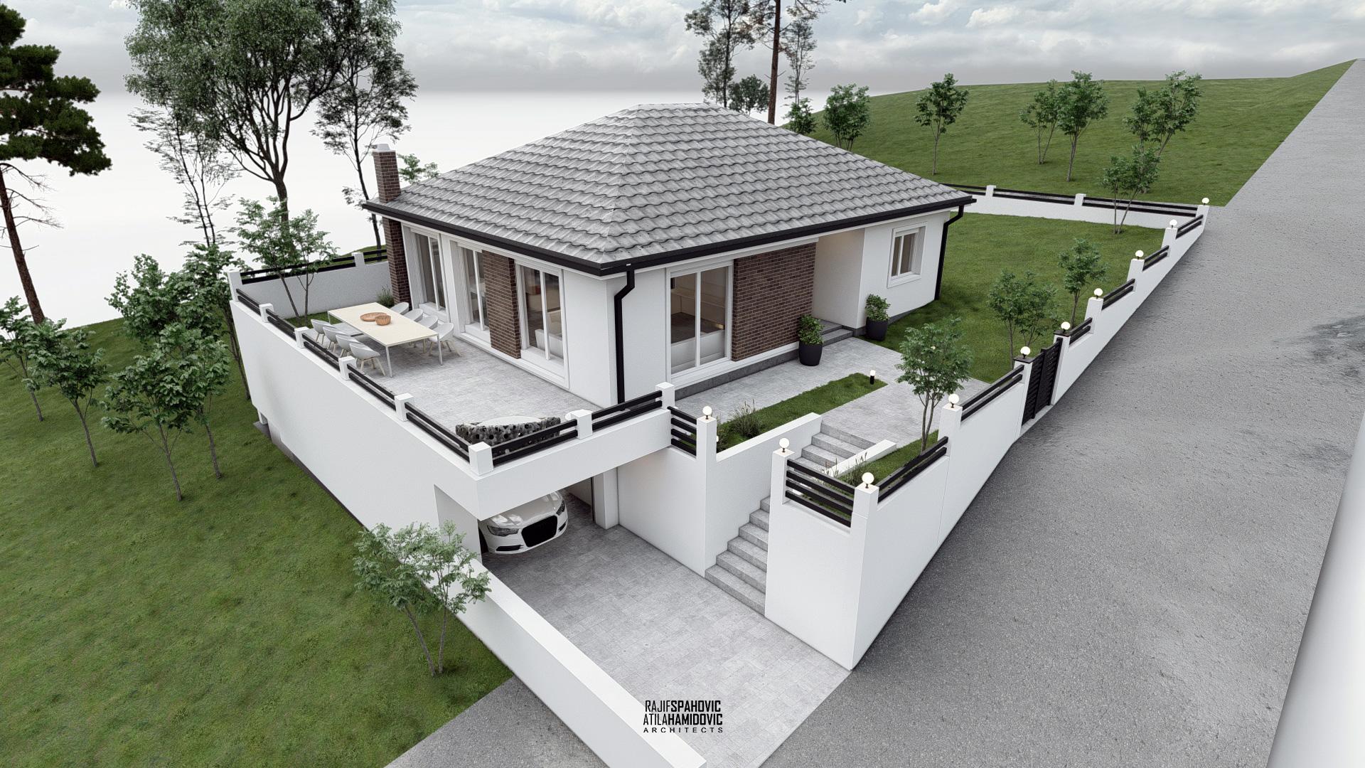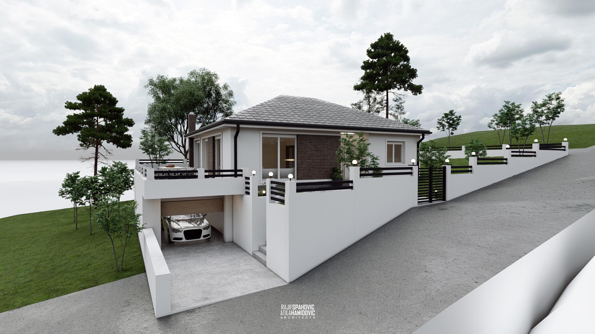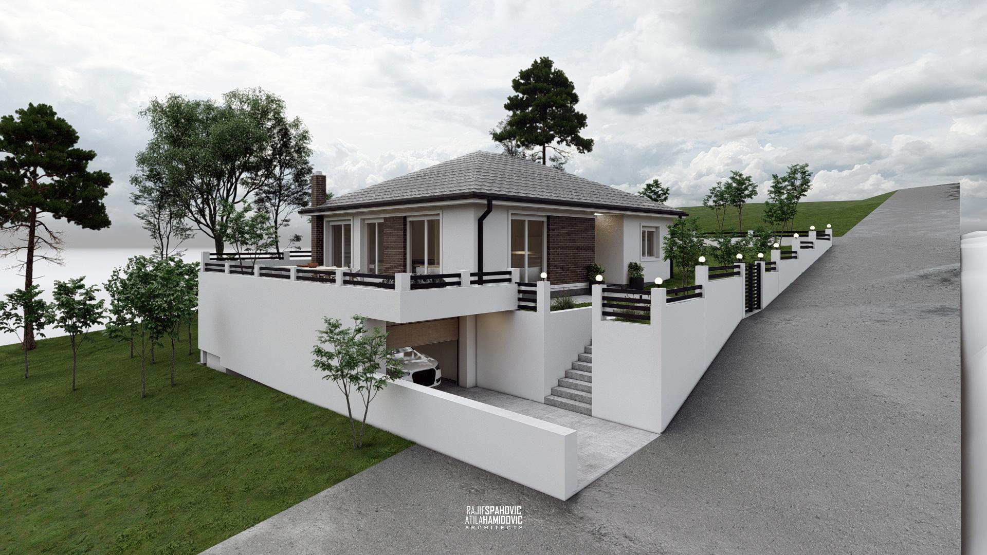 MJKVC | HOUSE is a residential building located on the periphery part of Novi Pazar. It is designed in a modern style using red brick details on the facade.