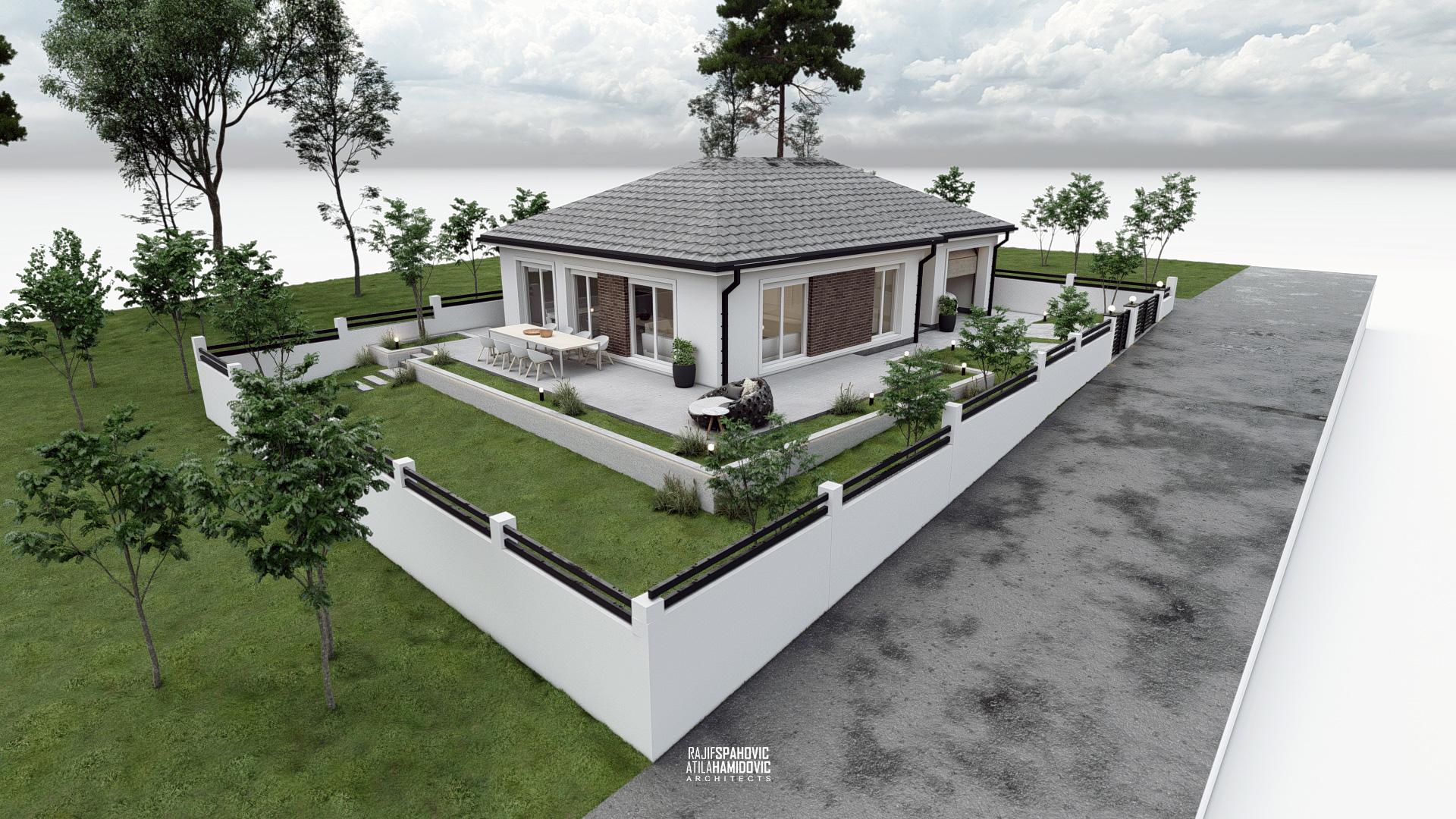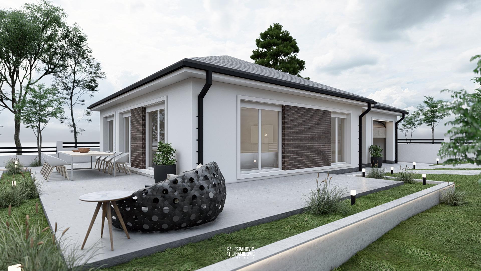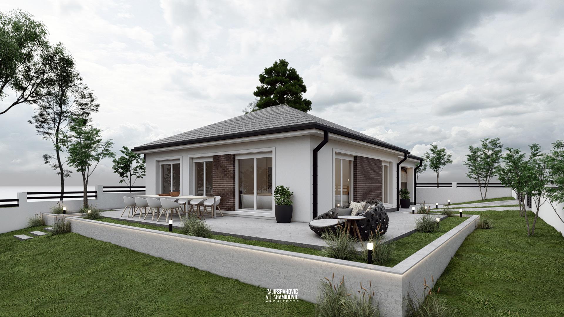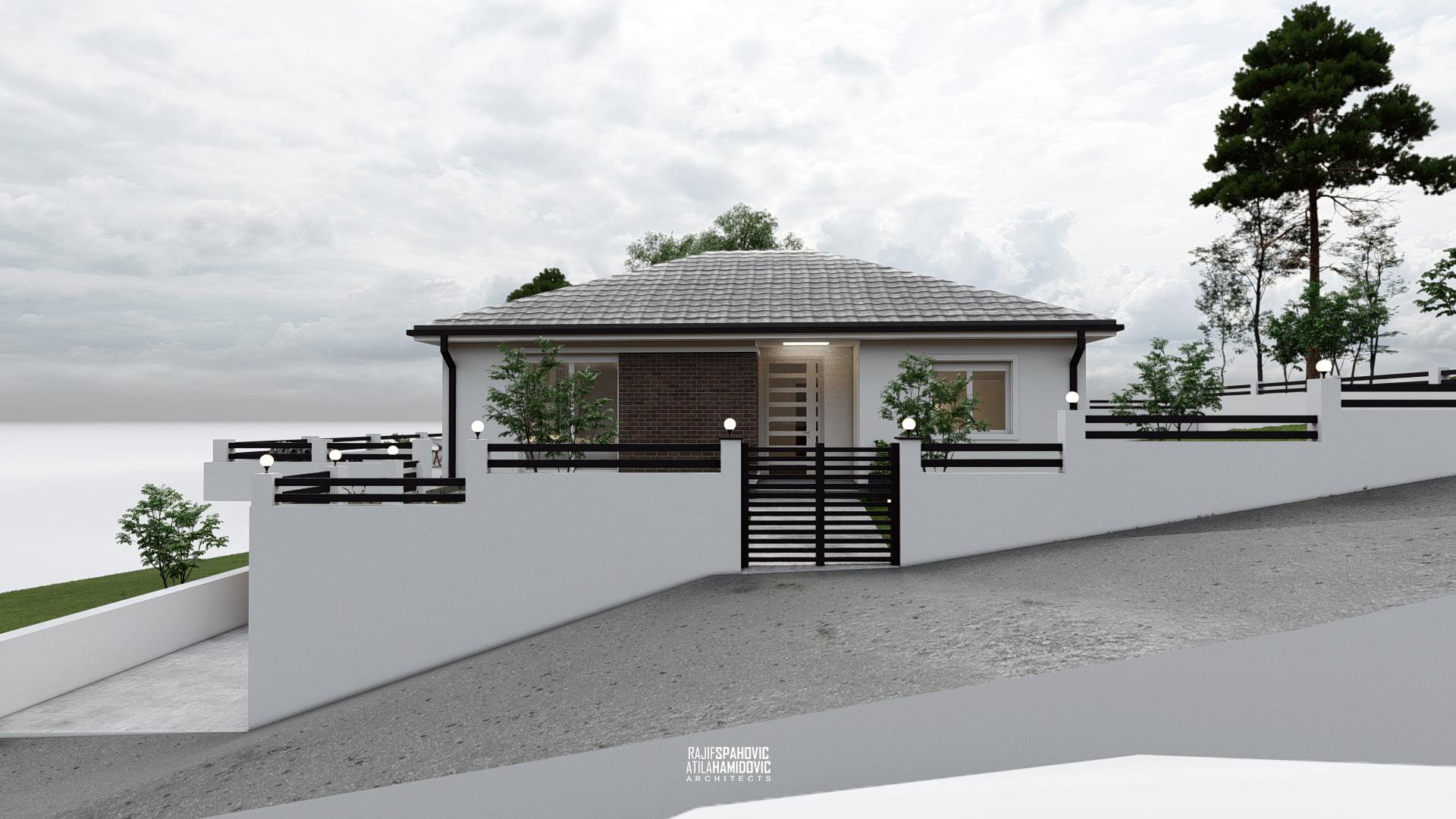 MJKVC | HOUSE is a residential building located on the periphery part of Novi Pazar. It is designed in a modern style using red brick details on the facade.