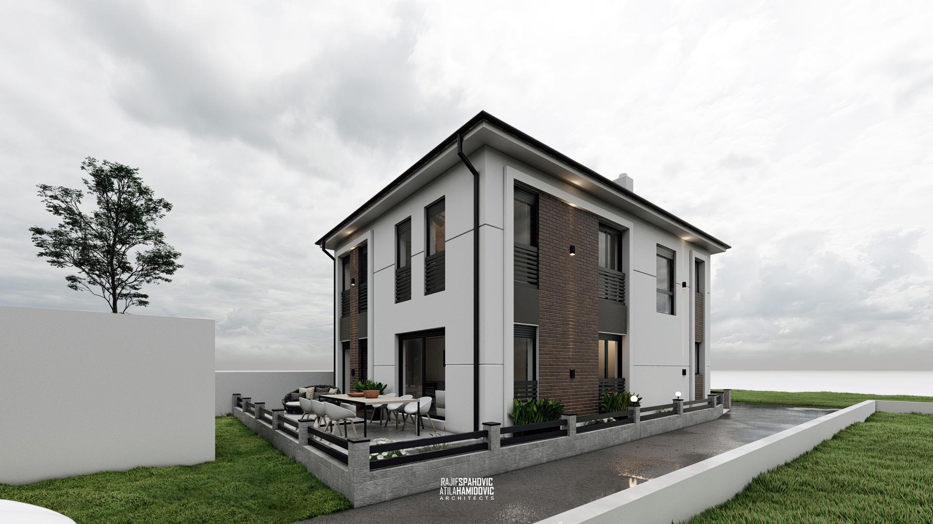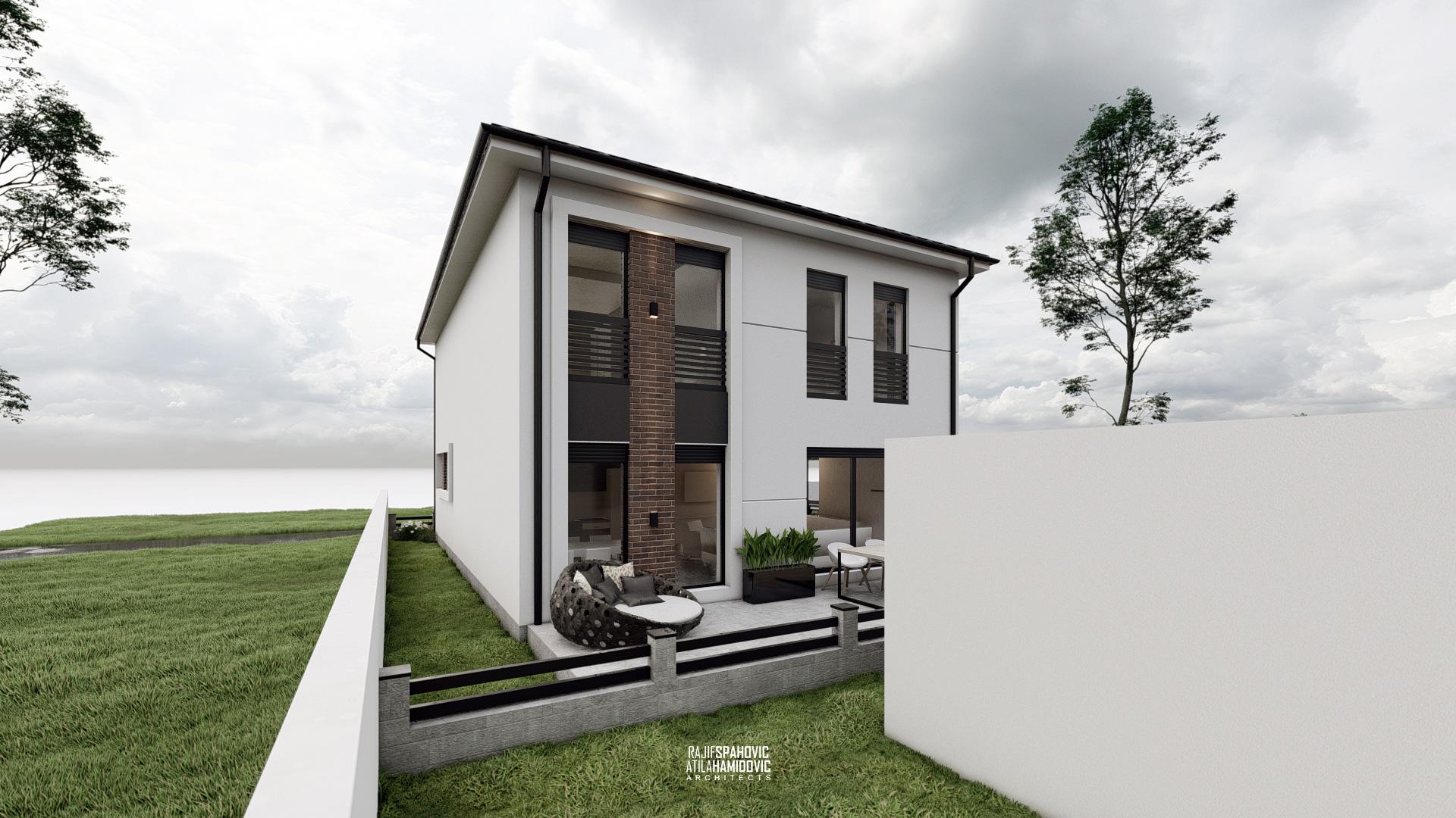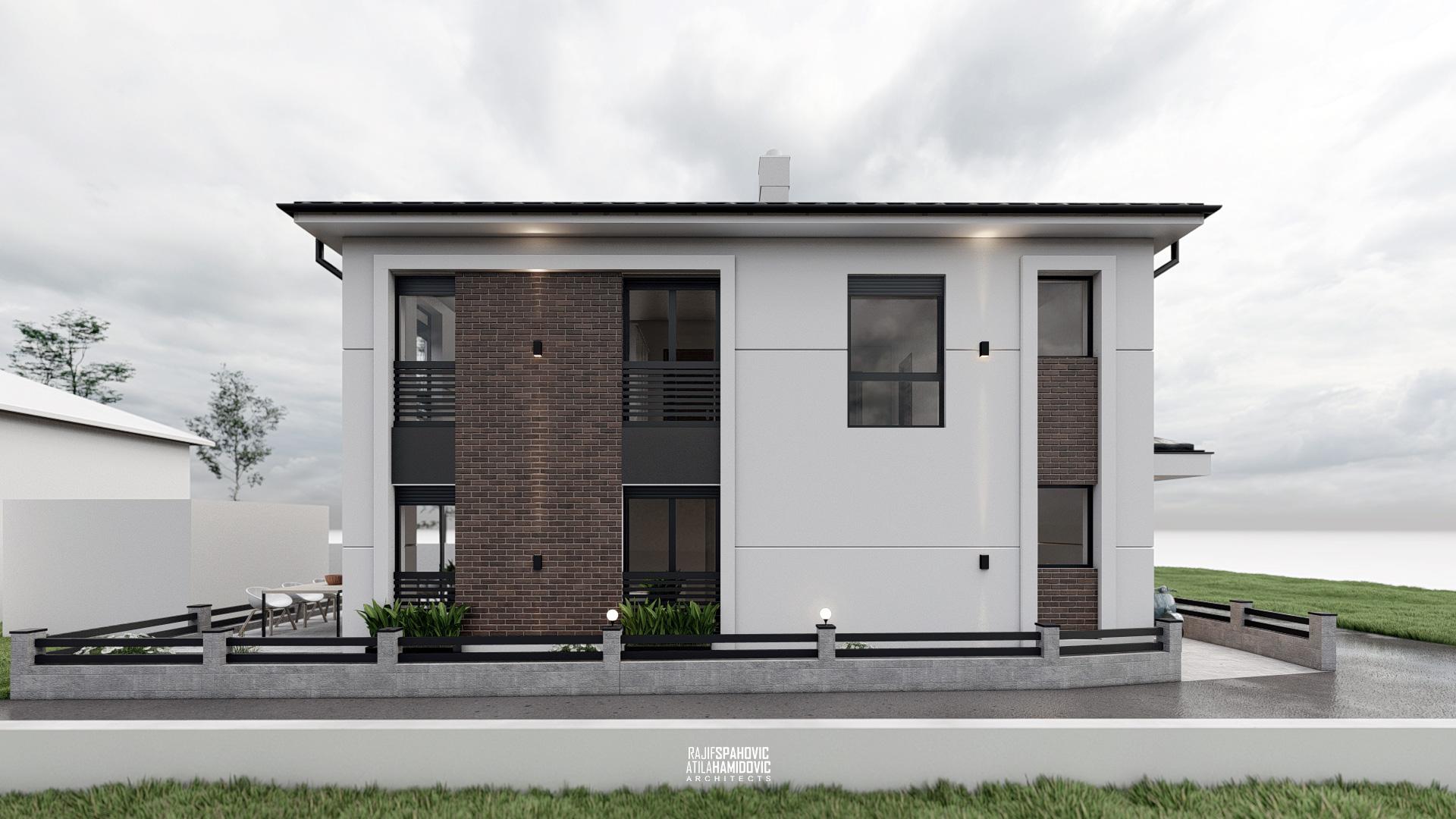 RJVC | HOUSE is a residential building located on the periphery part of Sjenica. It is designed in a modern style using red brick details on the facade.