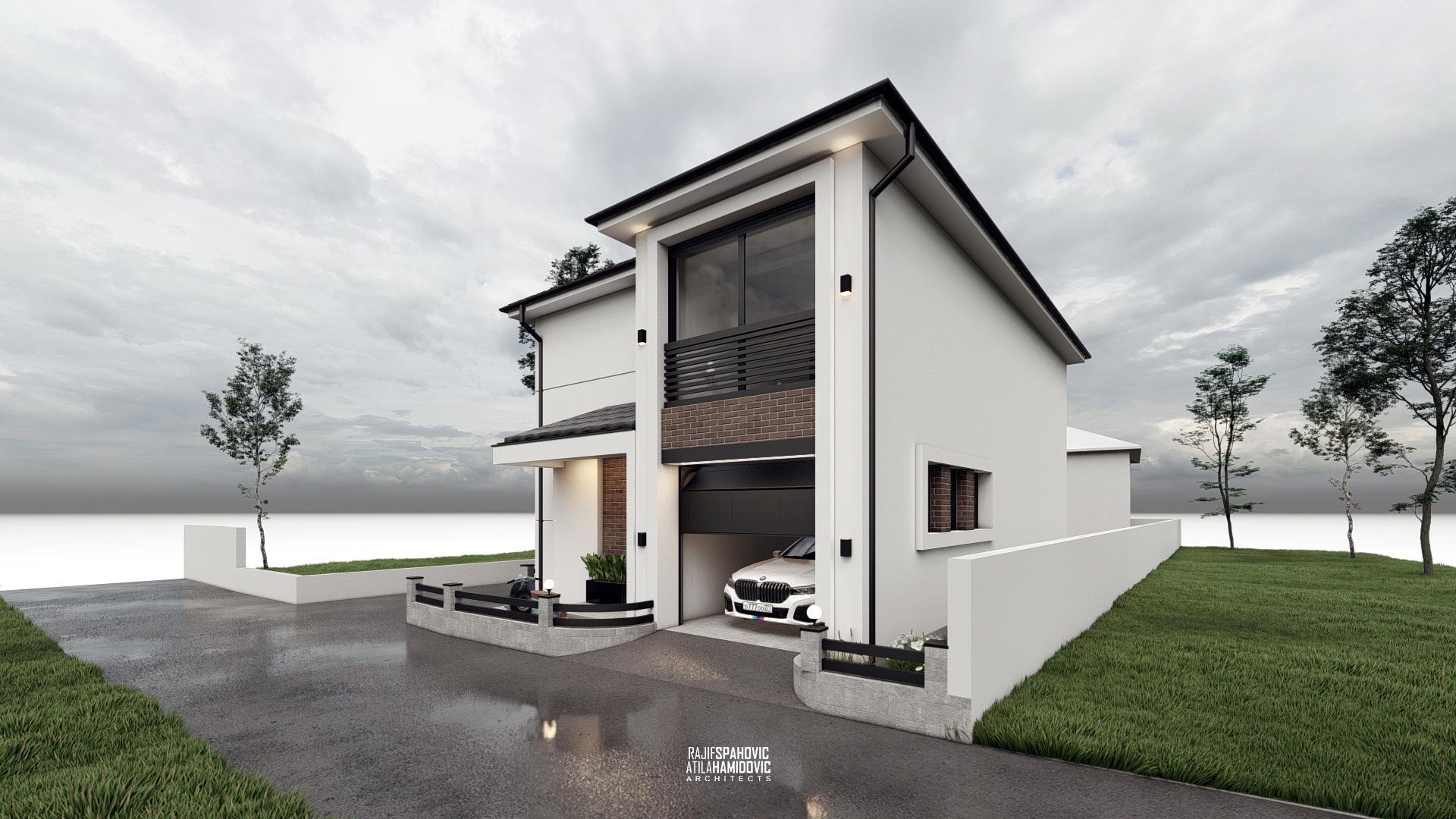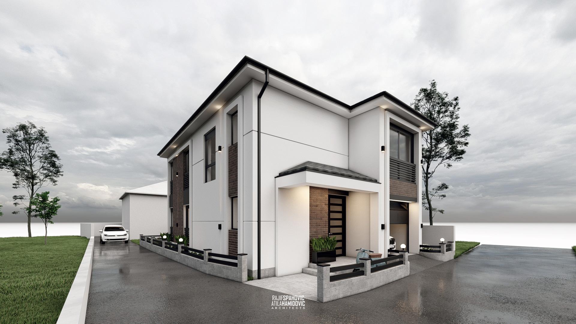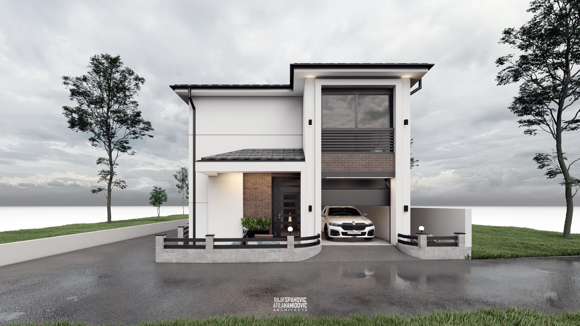 RJVC | HOUSE is a residential building located on the periphery part of Sjenica. It is designed in a modern style using red brick details on the facade.