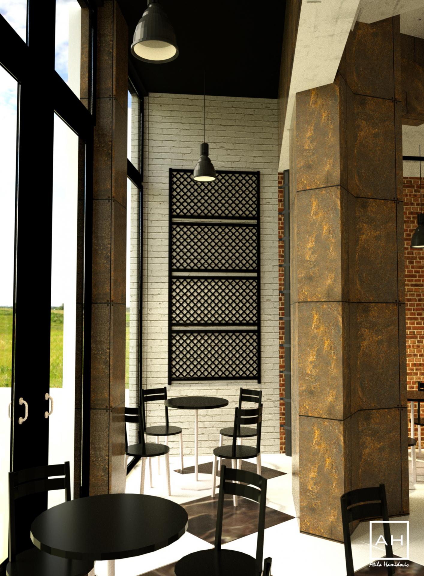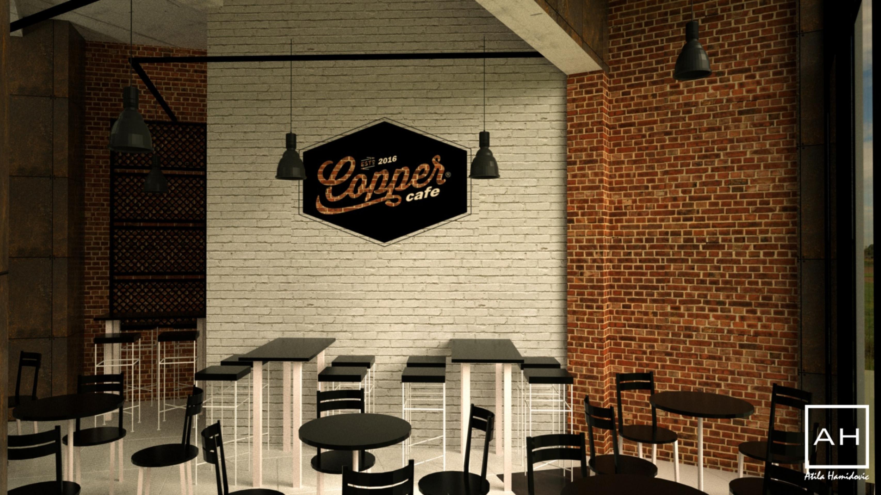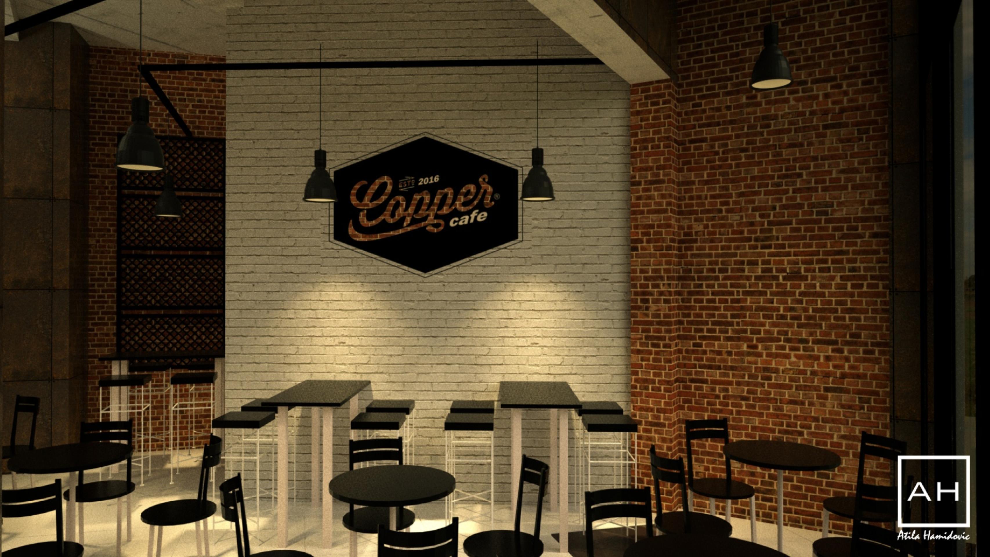 Copper Café is located in the central part of Novi Pazar, in Southern Republic of Serbia. It features an industrial interior with a combination of brick and copper elements.