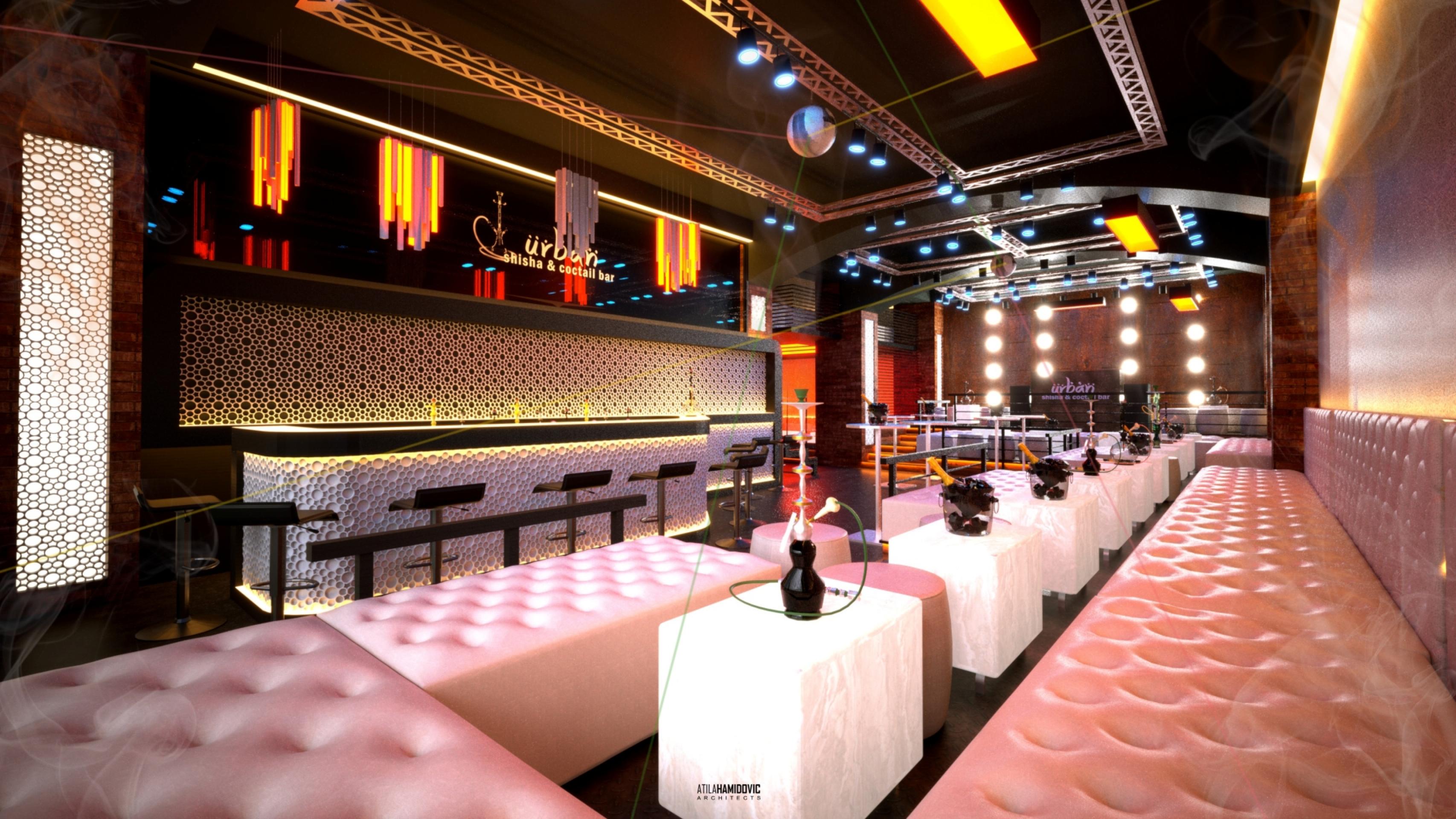 Urban Shisha & Coctail Bar is located in the central part of Novi Pazar, in Southern Republic of Serbia. It is conceptualized as a hookah lounge and features an industrial interior with a combination of brick and copper elements.