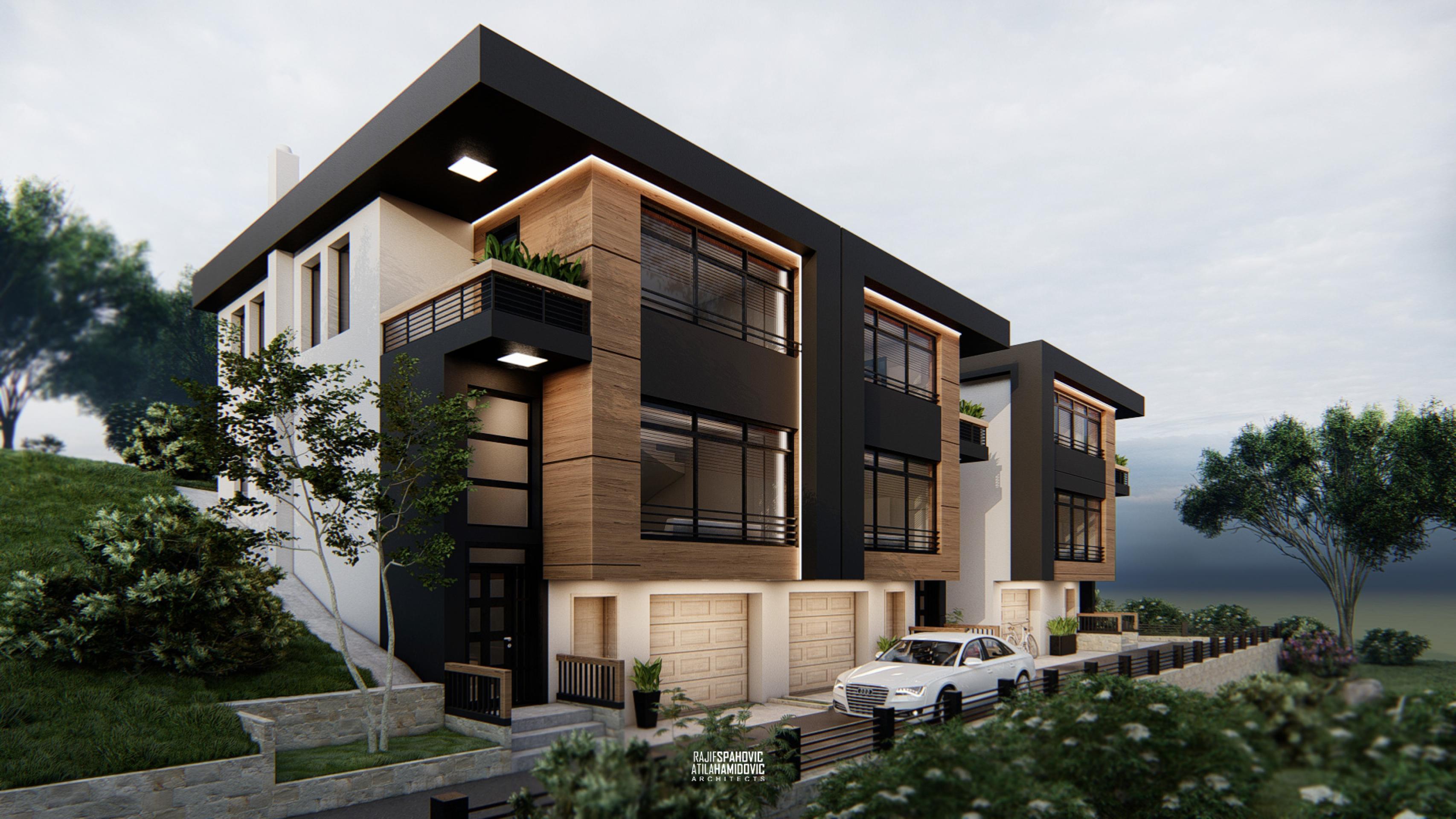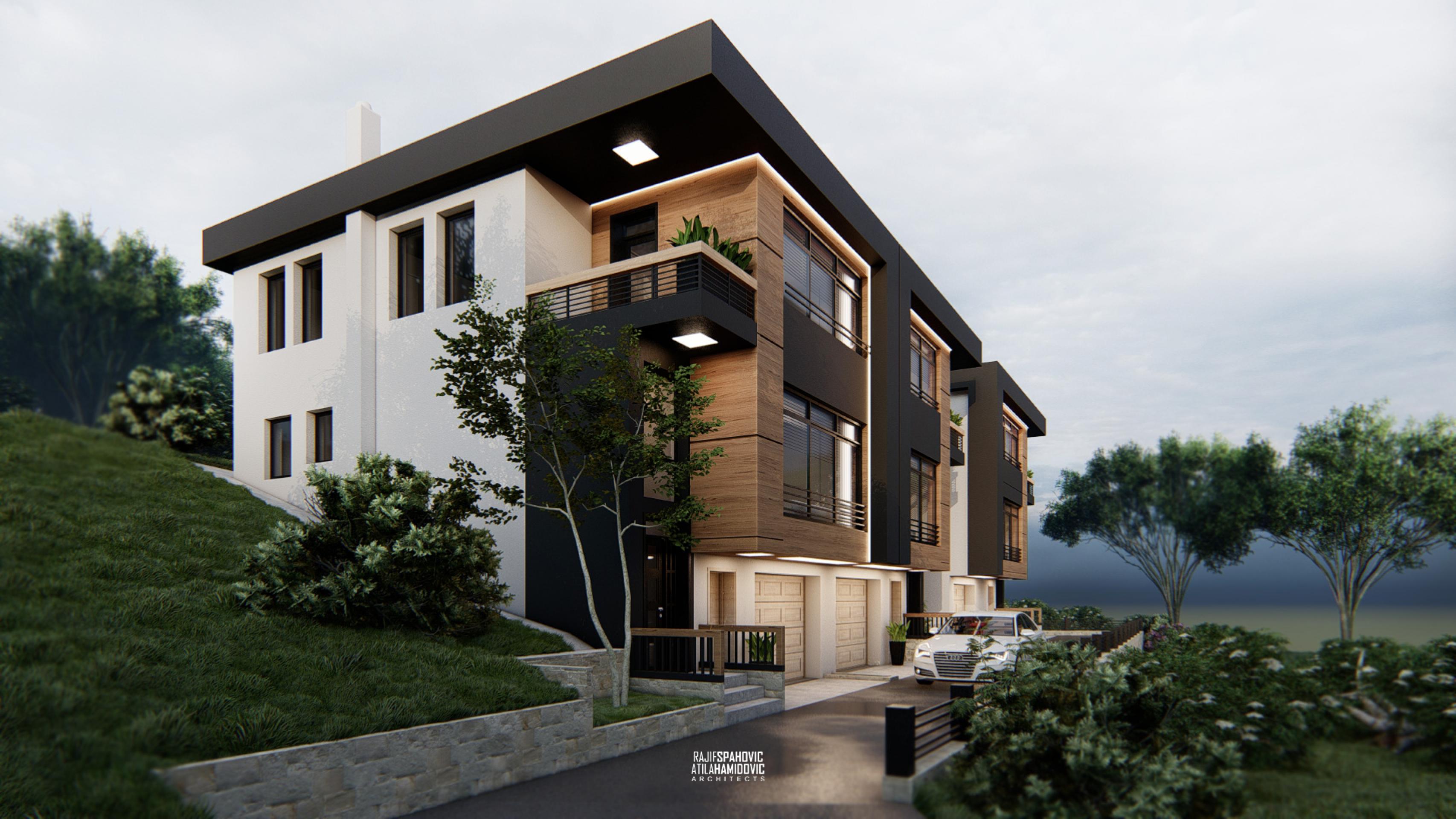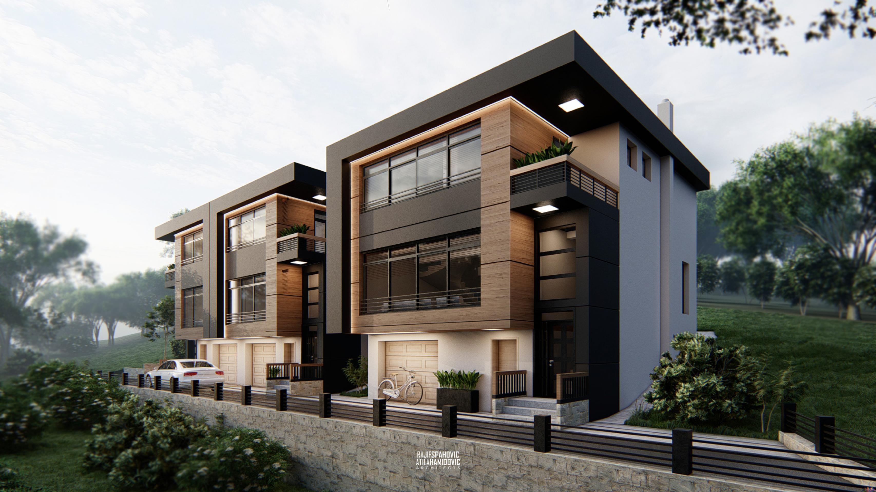 Triple Houses are a residential buildings located on the periphery part of Novi Pazar. It is designed in a modern style using contemporary materials on the facade.