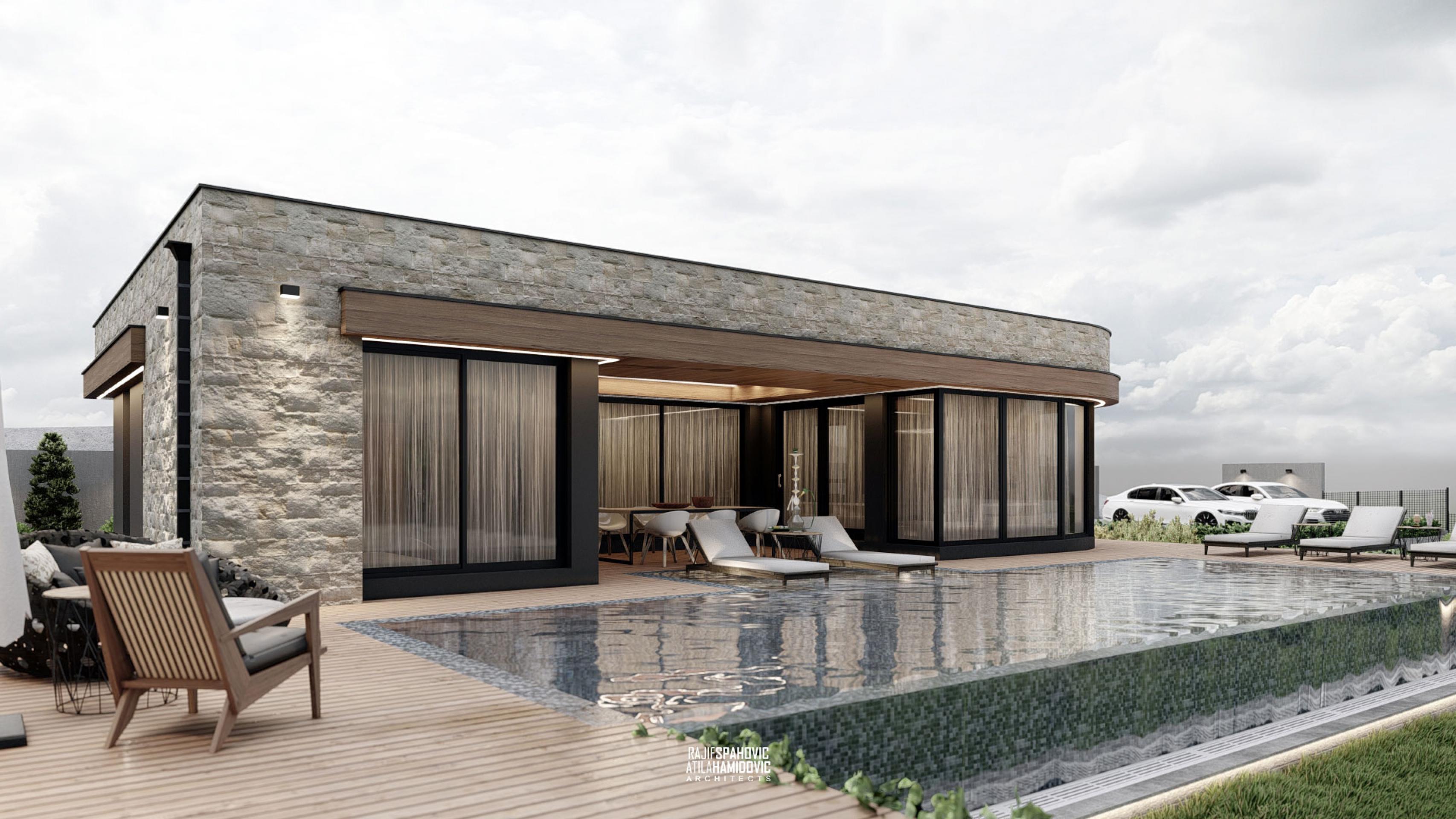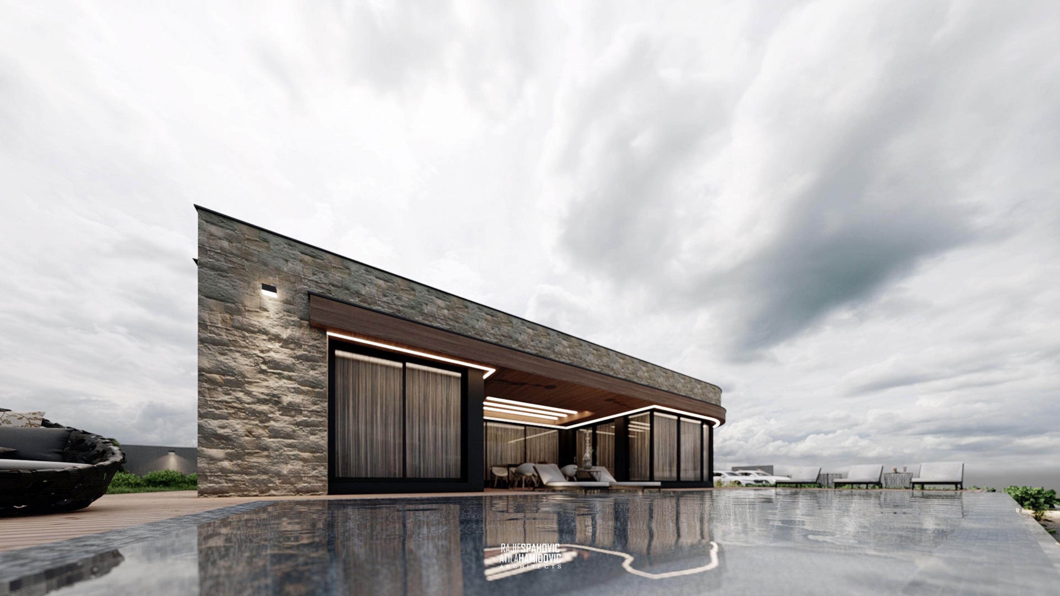 BSVC | HOUSE is a residential building located in the periphery part of Novi Pazar. It is designed in a modern style using contemporary materials on the facade included wood, metal and stone.