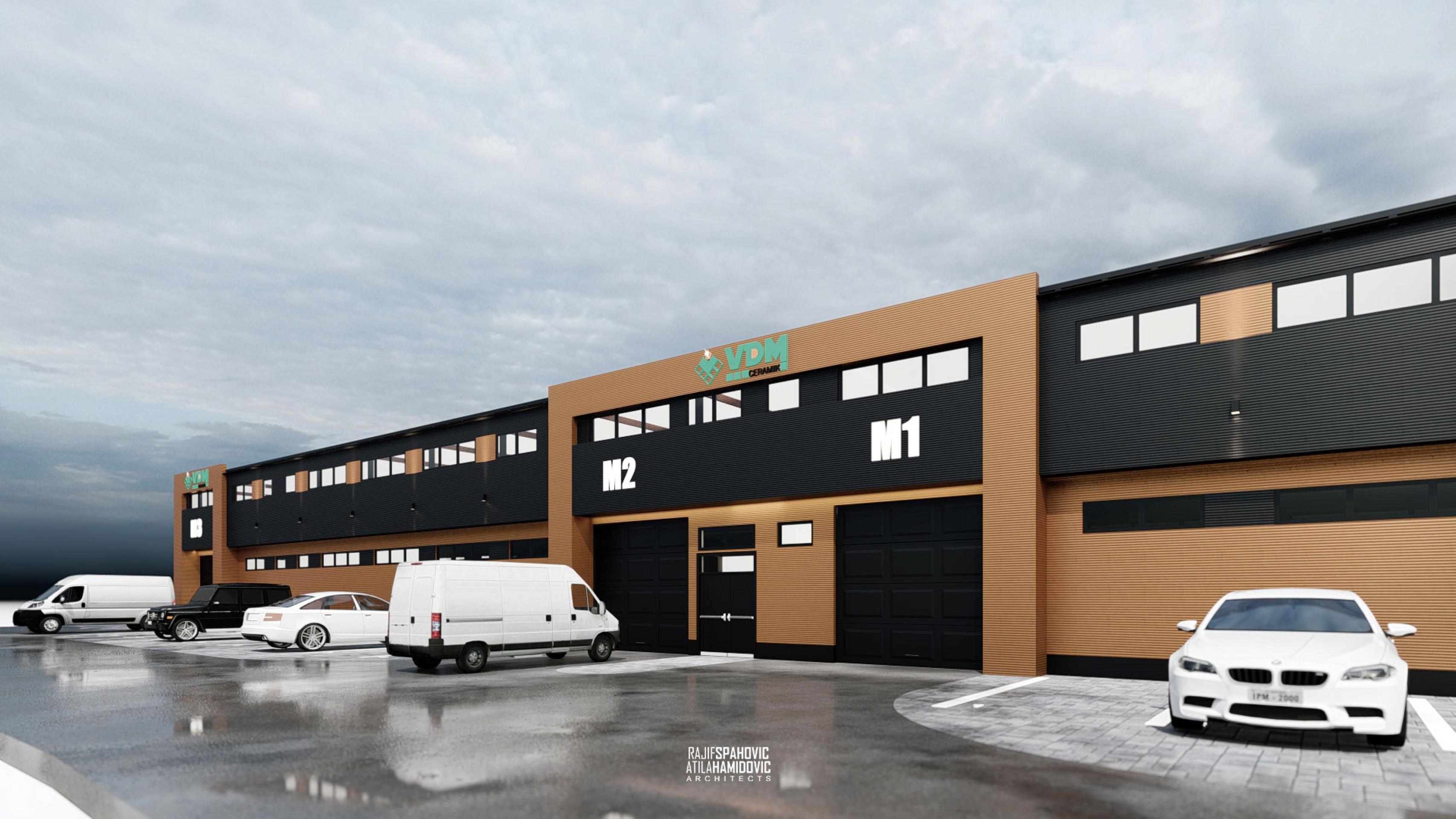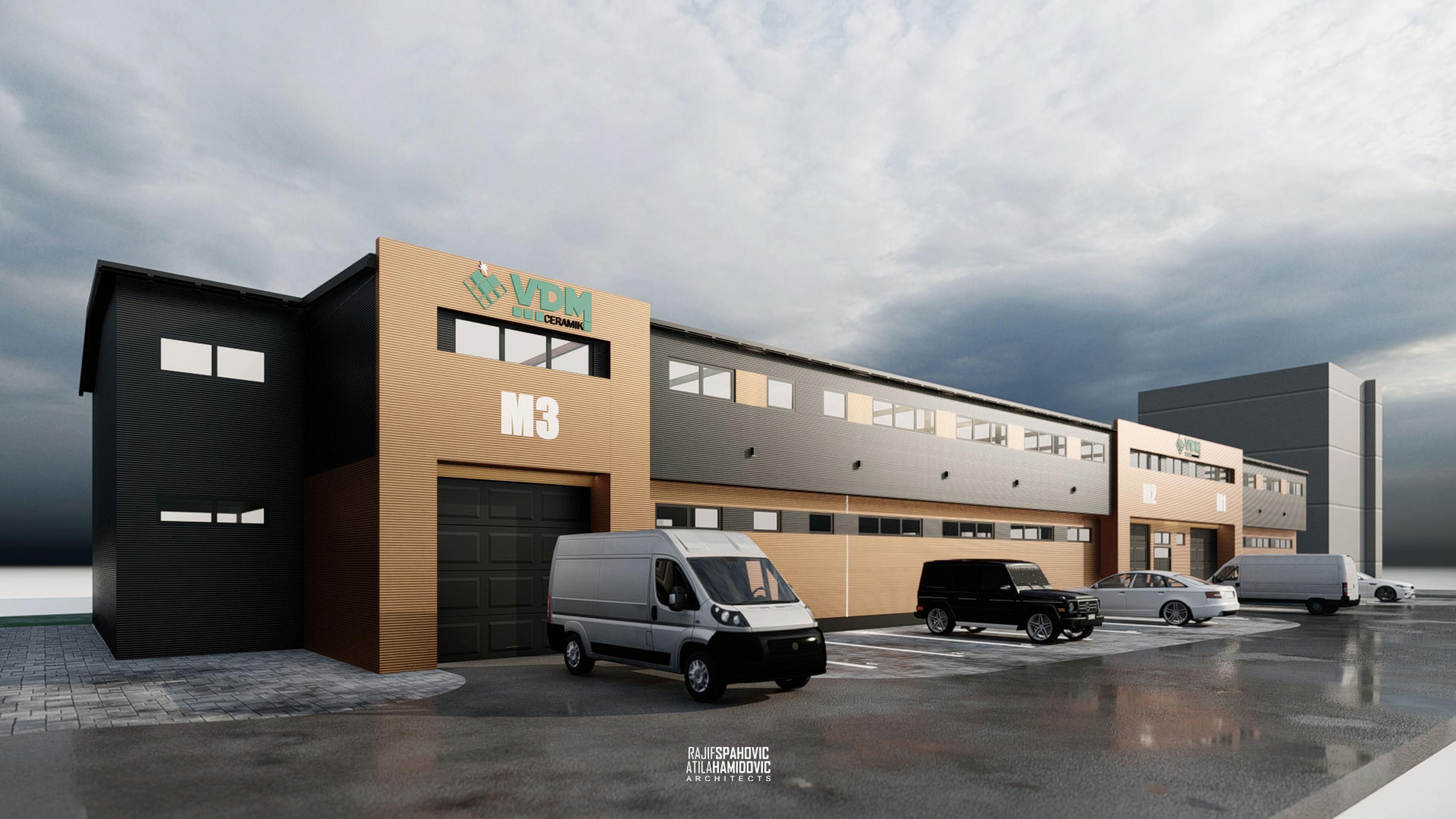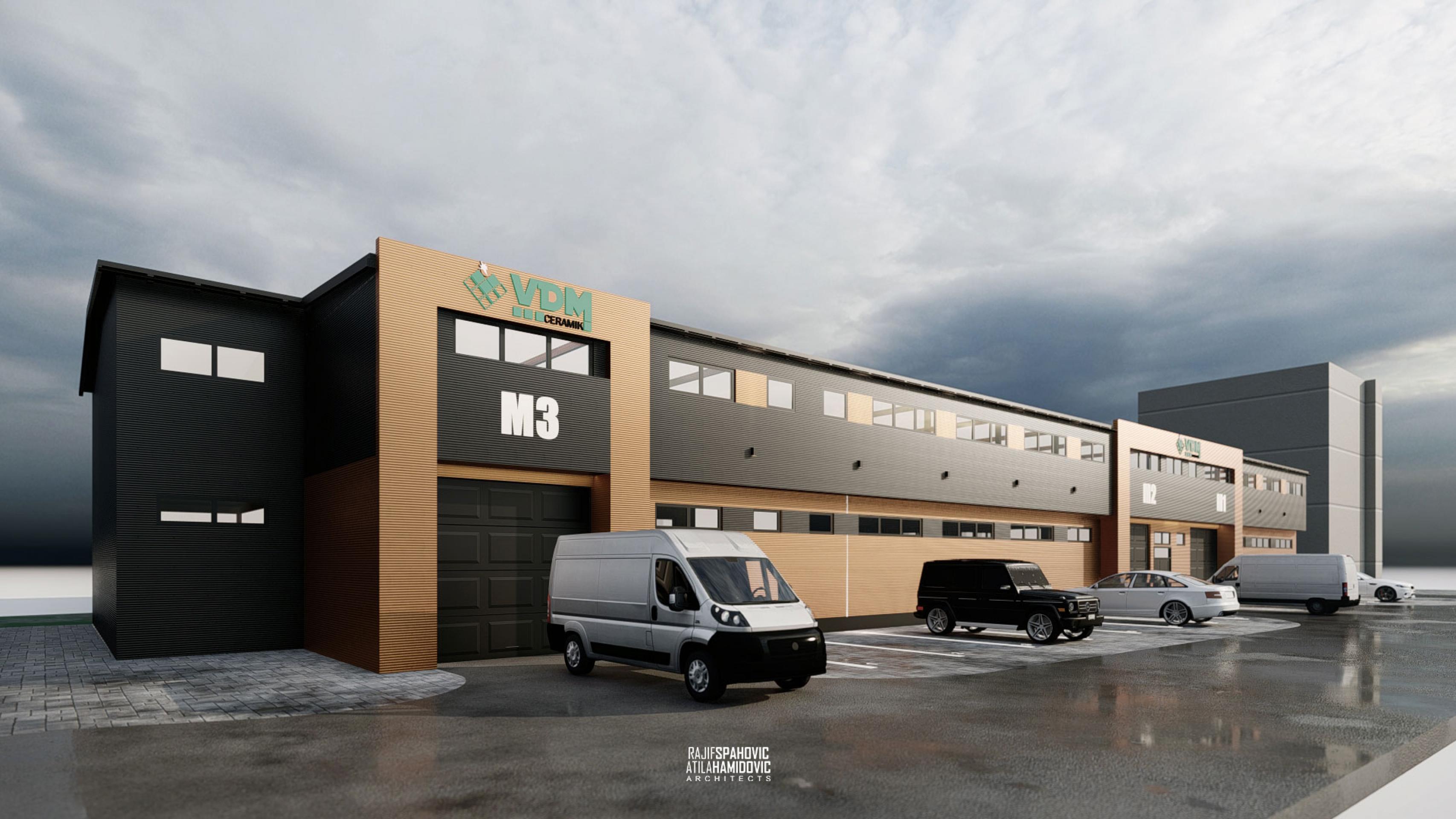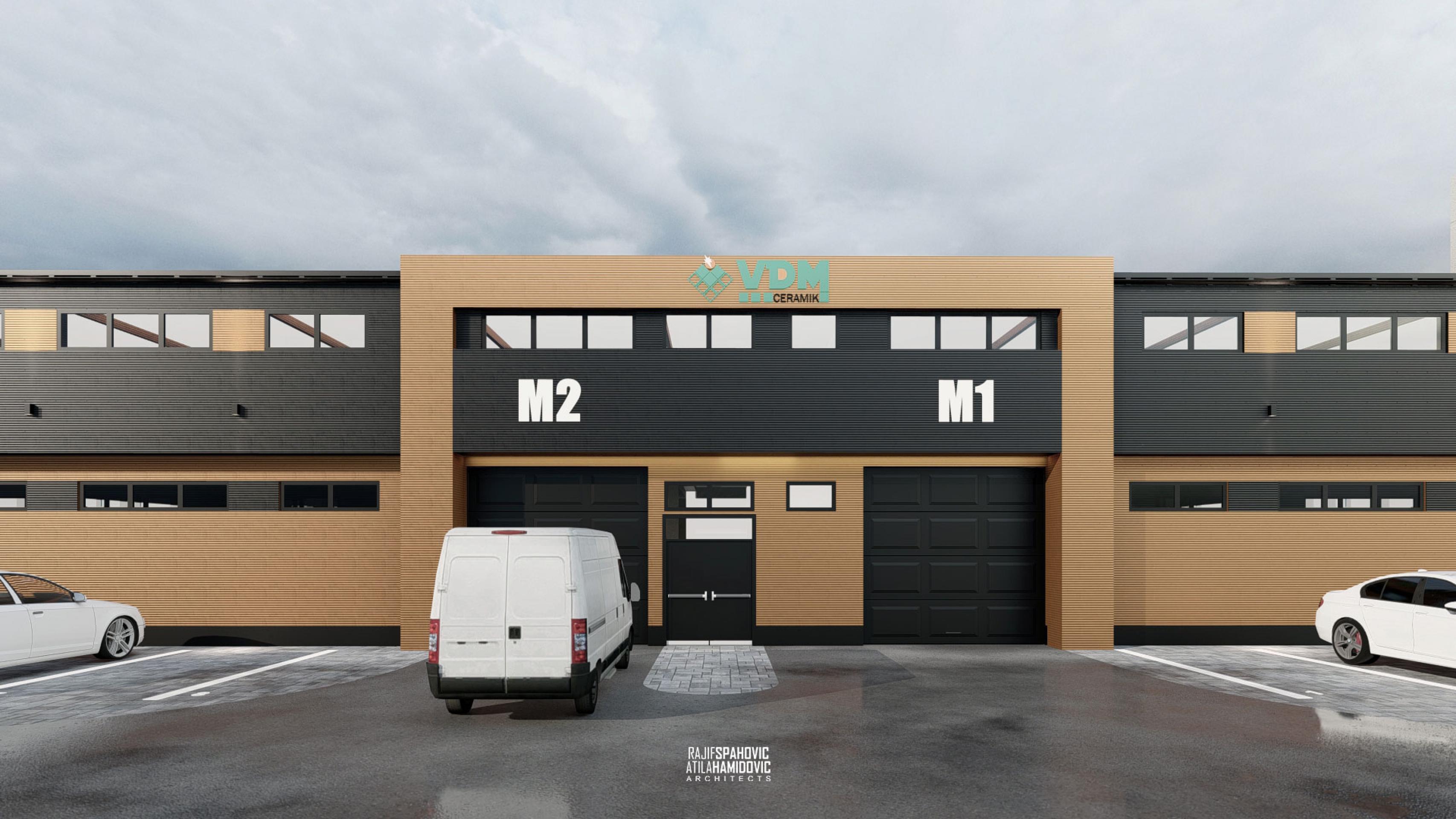 VDM CERAMIC is a business building located near the central part of the Novi Pazar. It is designed in a modern style with a sendvich panels in two colors.