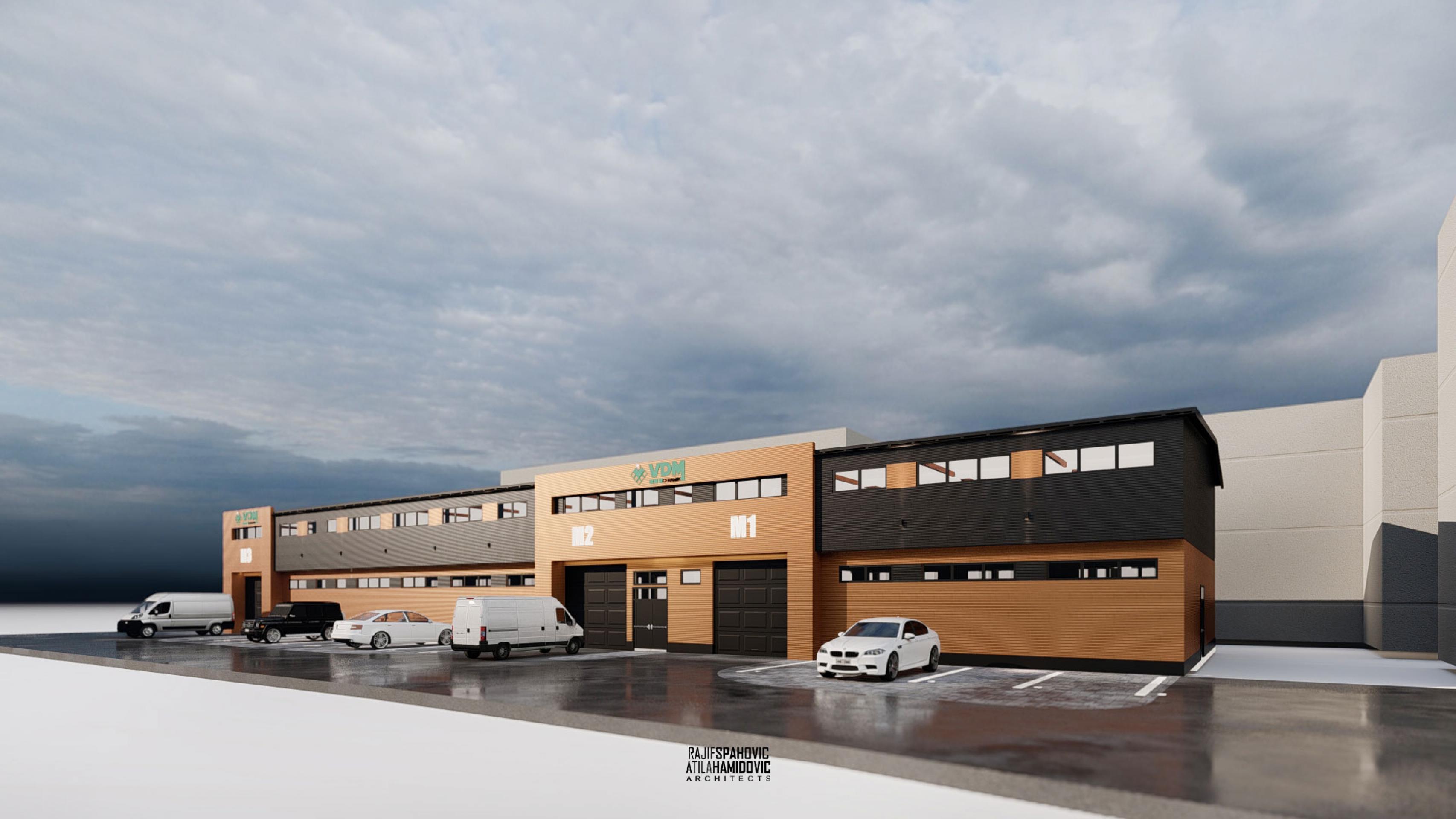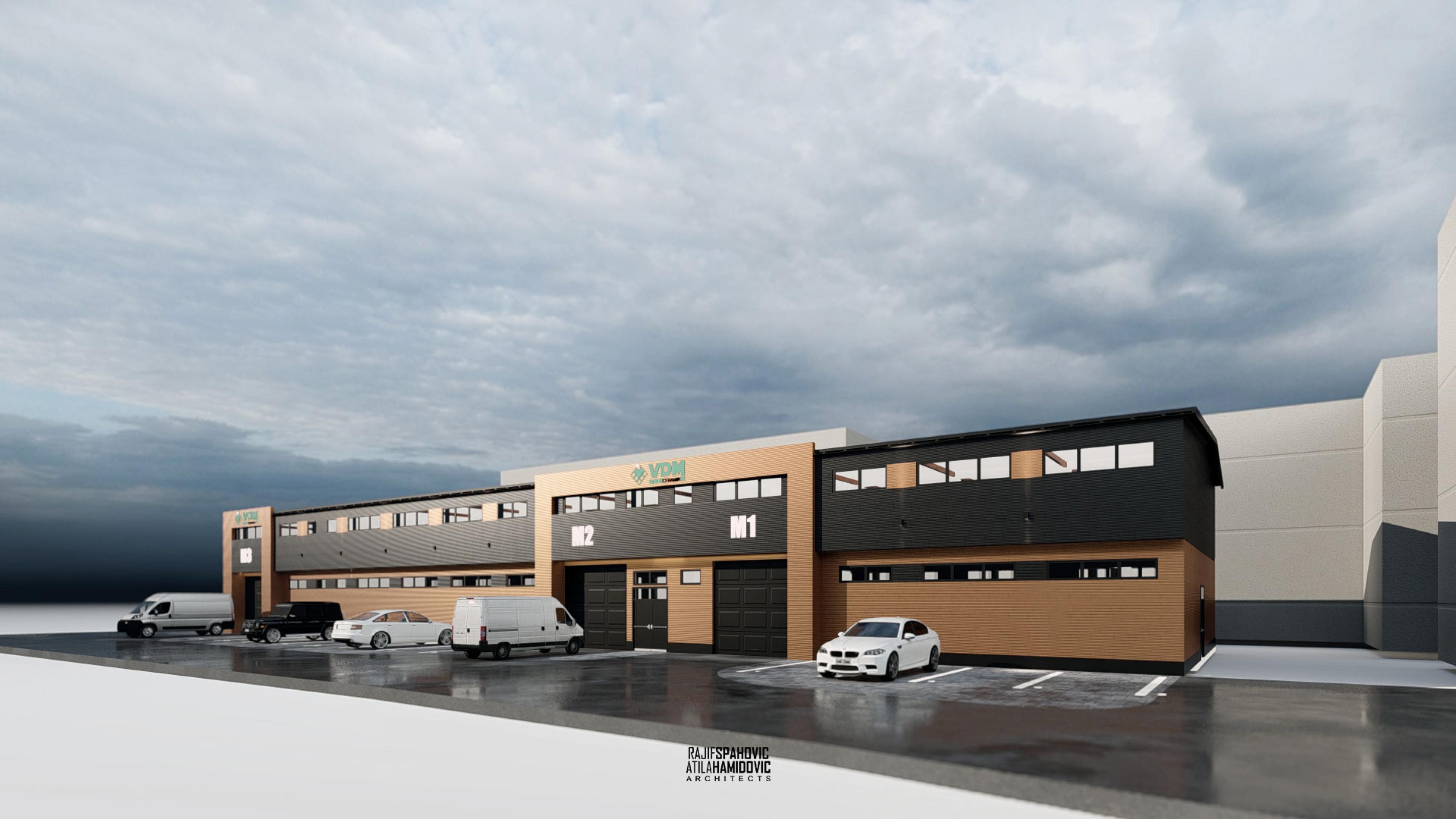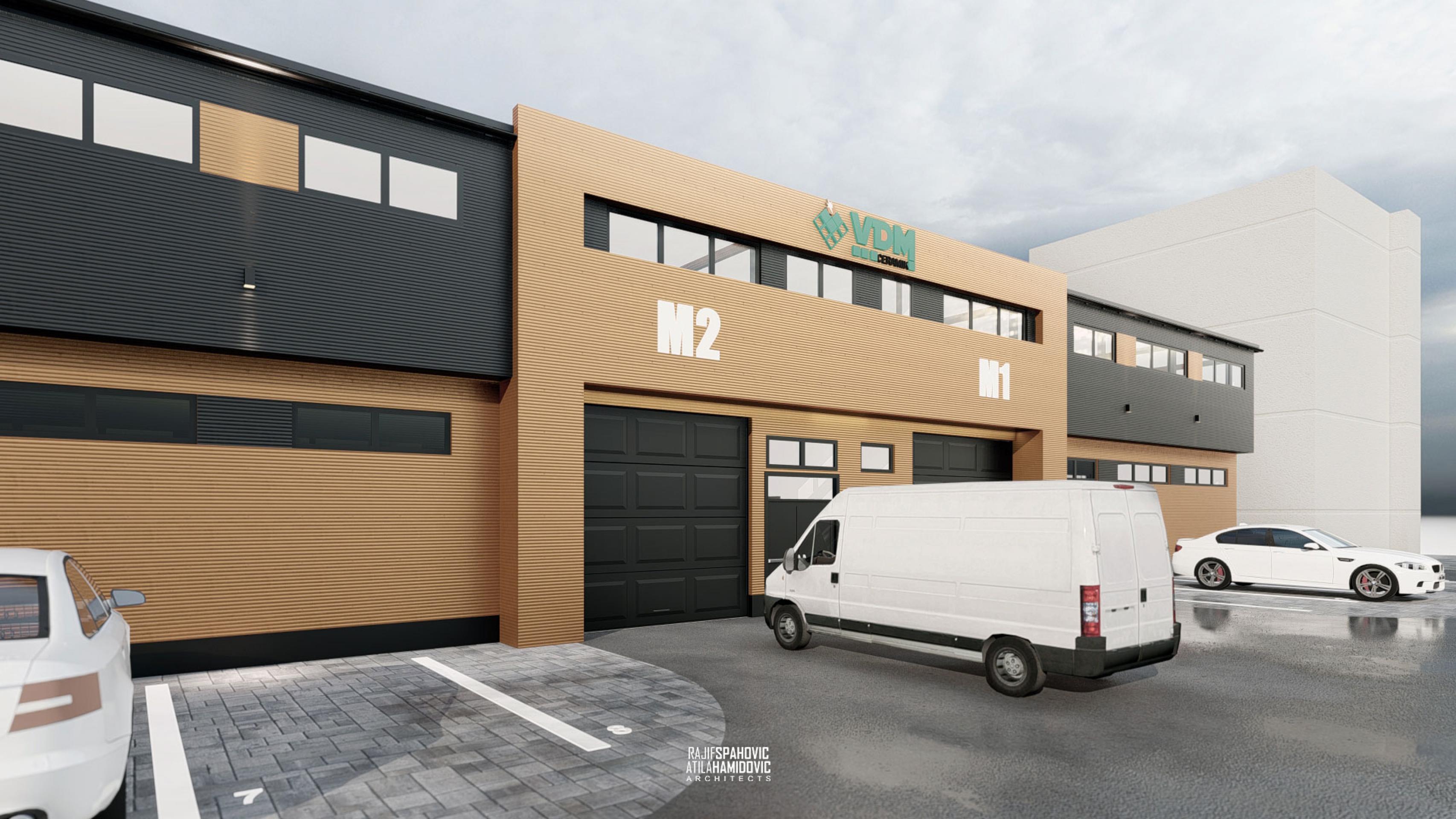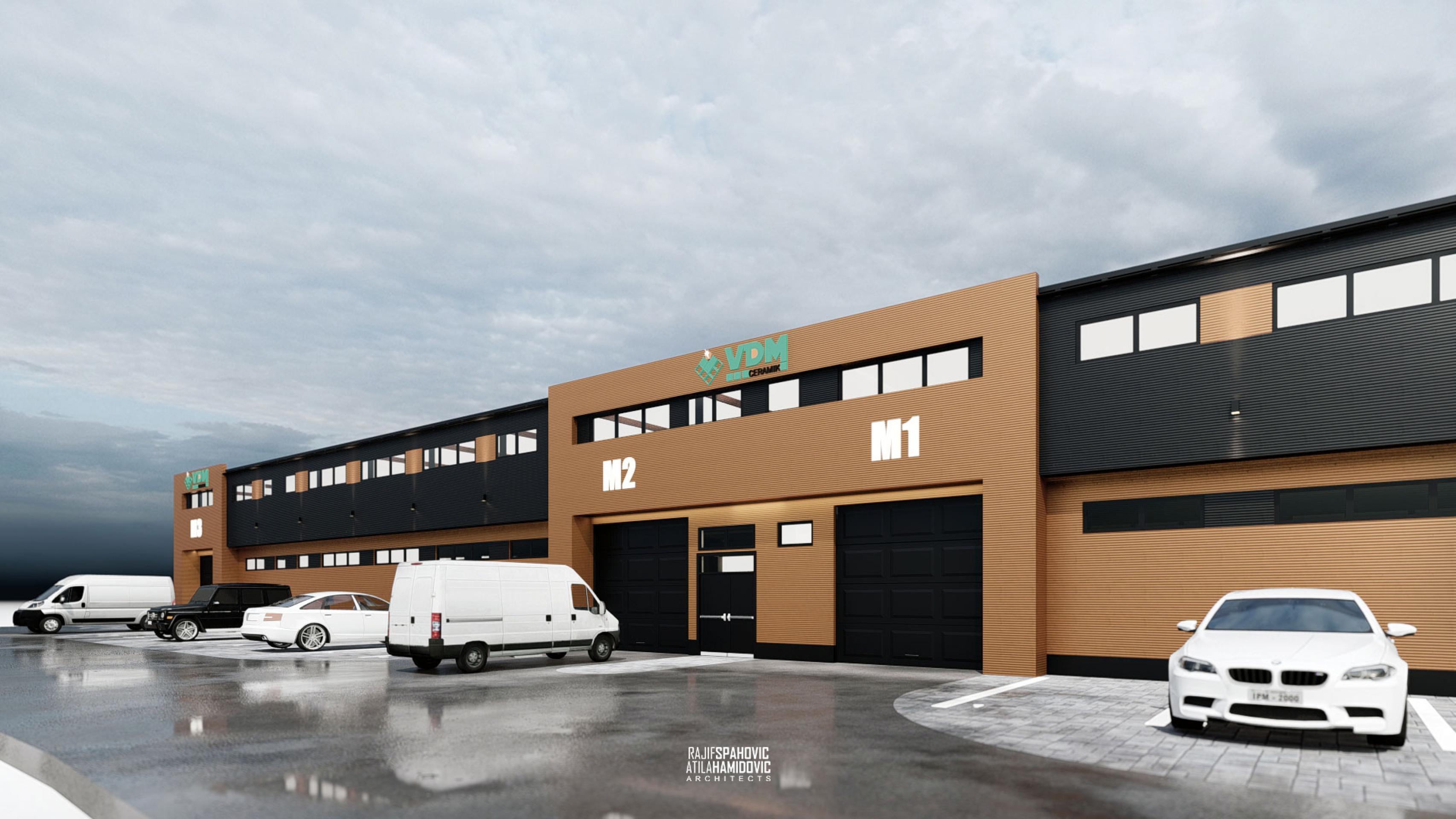 VDM CERAMIC is a business building located near the central part of the Novi Pazar. It is designed in a modern style with a sendvich panels in two colors.